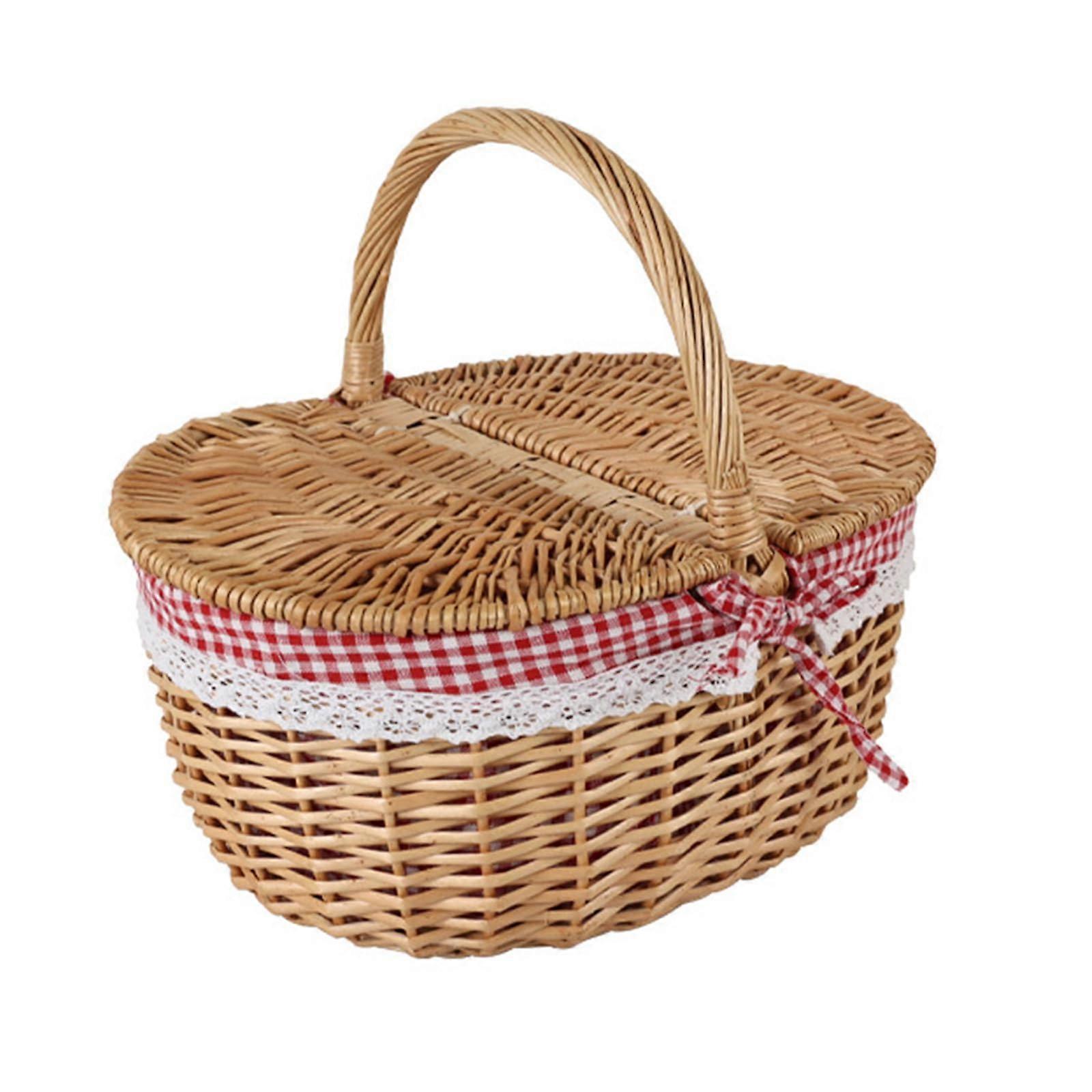 Wicker Picnic Basket with Lid Handwoven Willow Storage for Fruits Vegetables and Home Decor