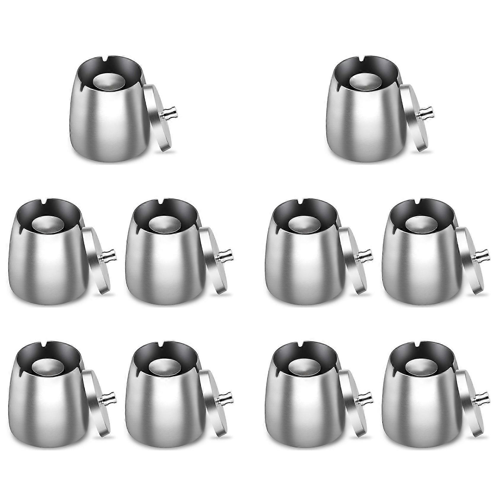 10X Ashtray Stainless Steel with Lid Heavy Ashtray Storm-Wind Non-Slip Base for Outside and Inside Silver