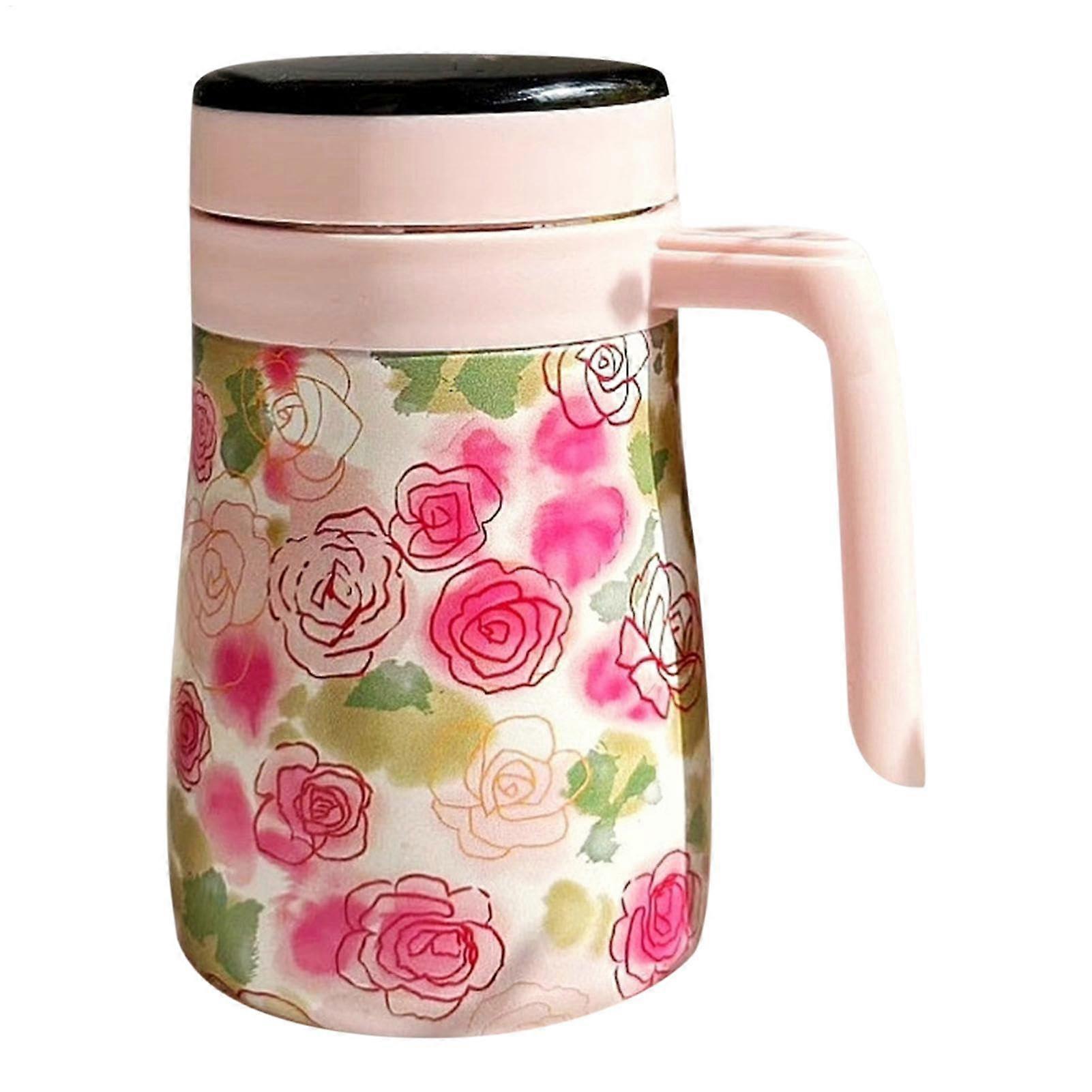 550ml Thermal Coffee Carafe with Temp Display, Stainless Steel Vintage Floral Insulated Tea Pot with Infuser, Pink
