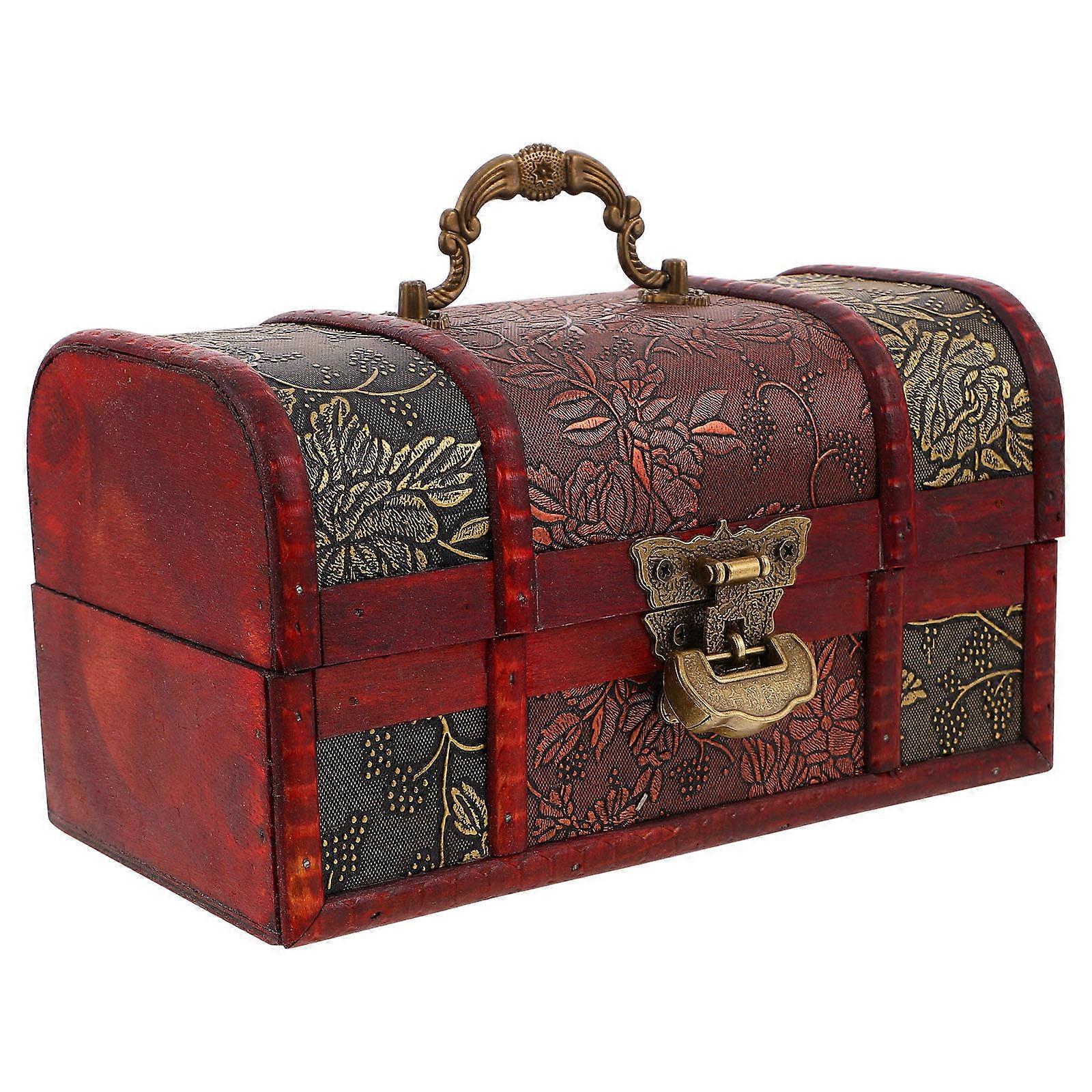 Wooden Keepsake Box Vintage Trunk Storage Chest With Precision Lock For Home Use Dark Red 20.00X11.20X11.00CM 1Pcs