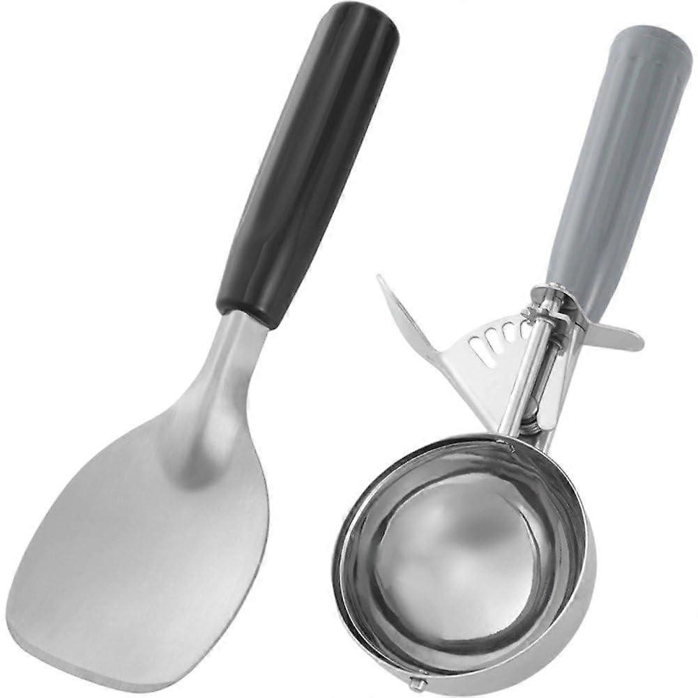 - Versatile Use: Perfect for serving ice cream, mashed potatoes, fruits, and cookie dough. Ideal for dessert shops, restaurants, and home use. - Durable Construction: Made from high-quality stainless steel with a sturdy plastic handle, ensuring safety and longevity for everyday use. - Lightweight and Compact: Designed for easy handling, storage, and portability, making it a convenient addition to your kitchen tools. - Effortless Scooping: Features a unique release lever that allows you to effortlessly scoop out perfectly shaped ice cream balls. - Practical Applications: - Enjoy delightful ice cream sundaes at home with friends and family. - Serve smooth mashed potatoes during holiday gatherings. - Easily portion cookie dough for baking sessions. This spoon combines functionality and comfort, making it an essential tool for any kitchen.