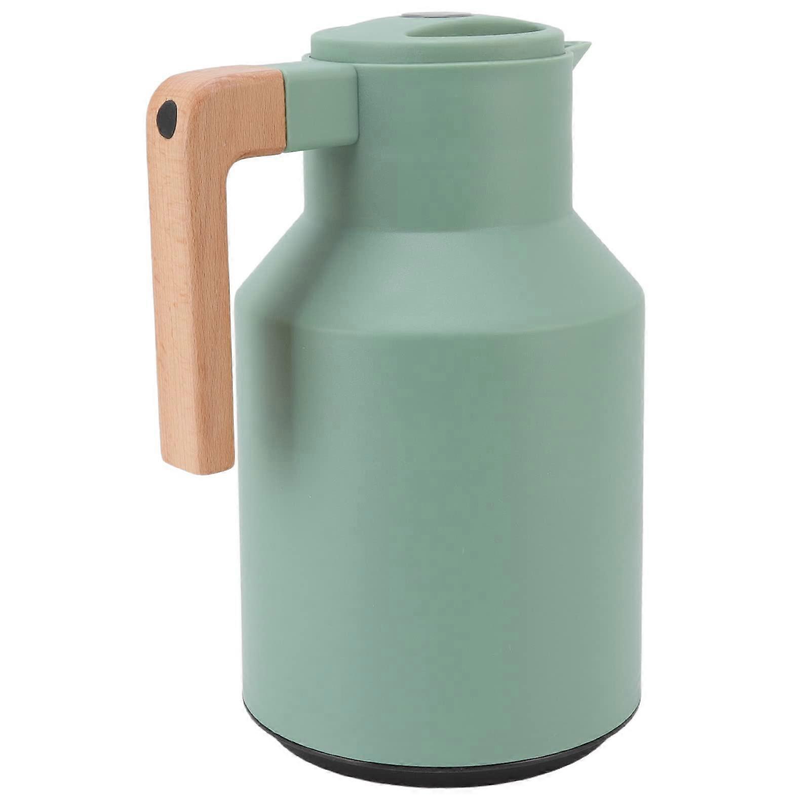 1L Thermal Coffee Carafe with Beech Wood Handle, Vacuum Insulated Coffee Pot 12h Heat Retention Green