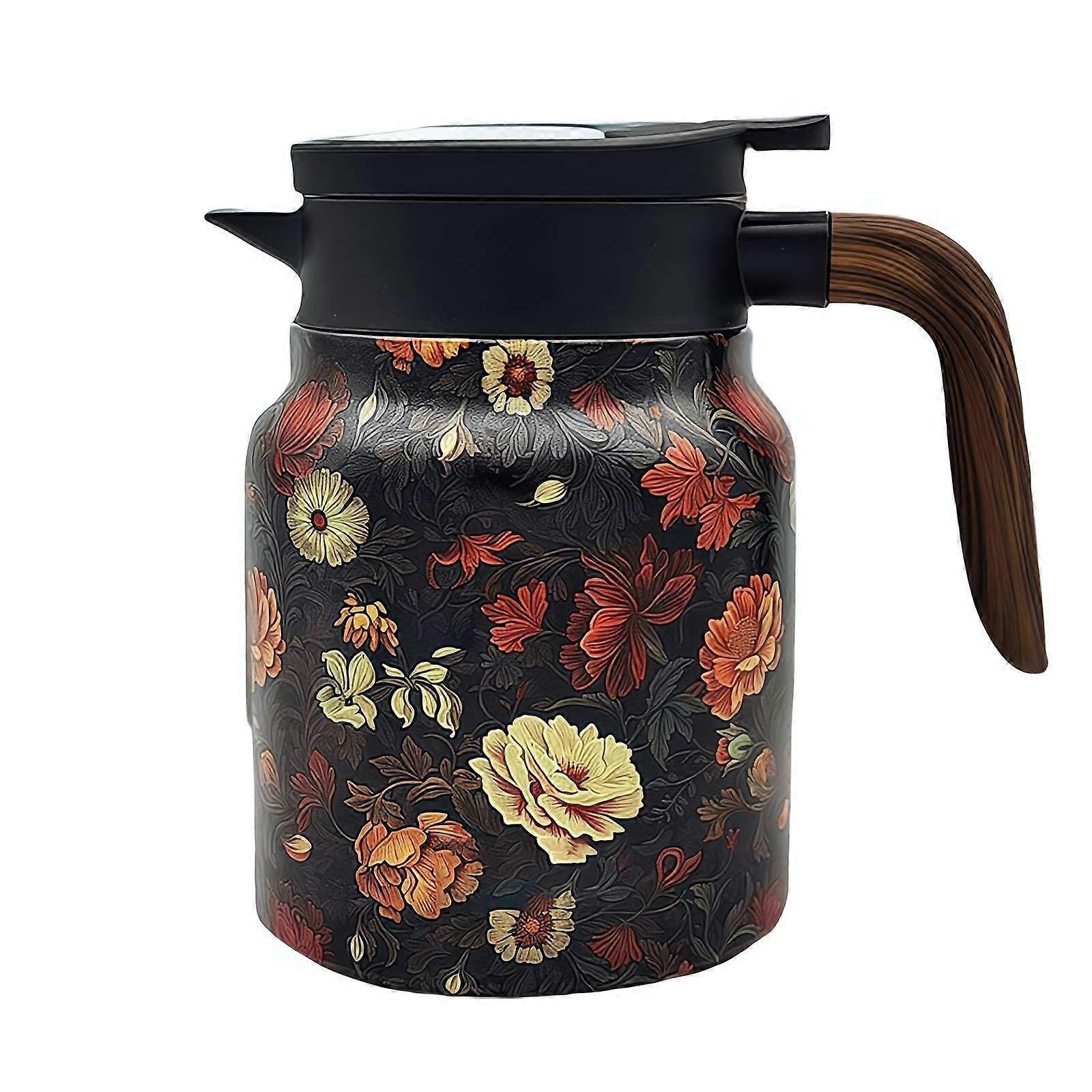 Vintage Floral Stainless Steel Thermal Coffee Carafe 1000ML with Infuser and Press Spout