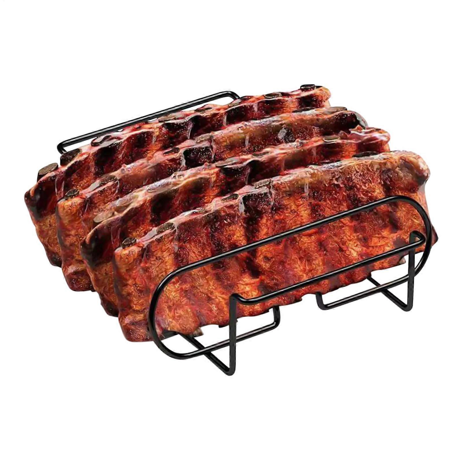 BBQ Rib Rack Carbon Steel Grill Rib Holder with Balanced Heat Distribution Dishwasher Safe
