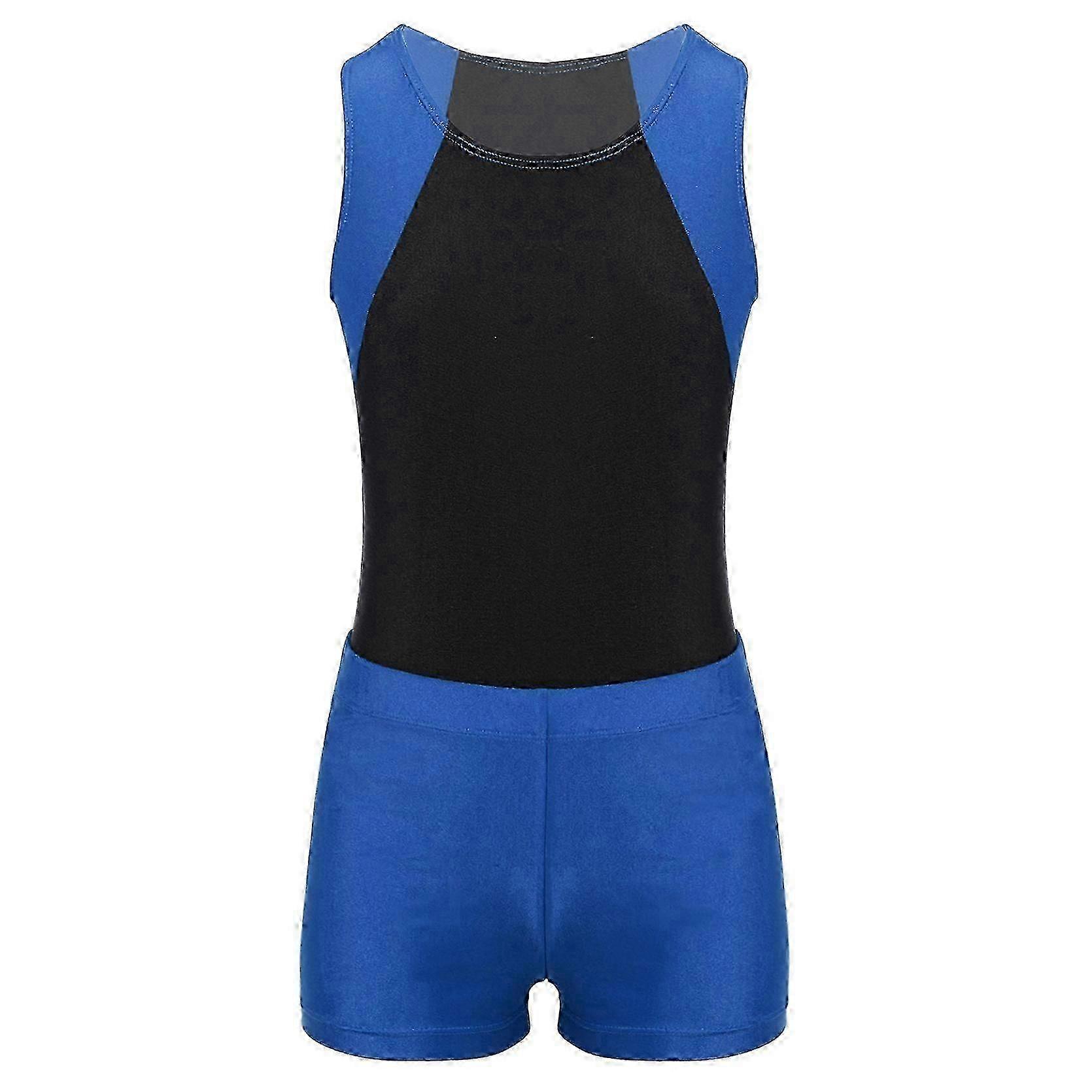 Kids Boys Round Neck Sleeveless Leotard Bodysuit Jumpsuit With Shorts Set For Gymnastic Yoga Workout Competition