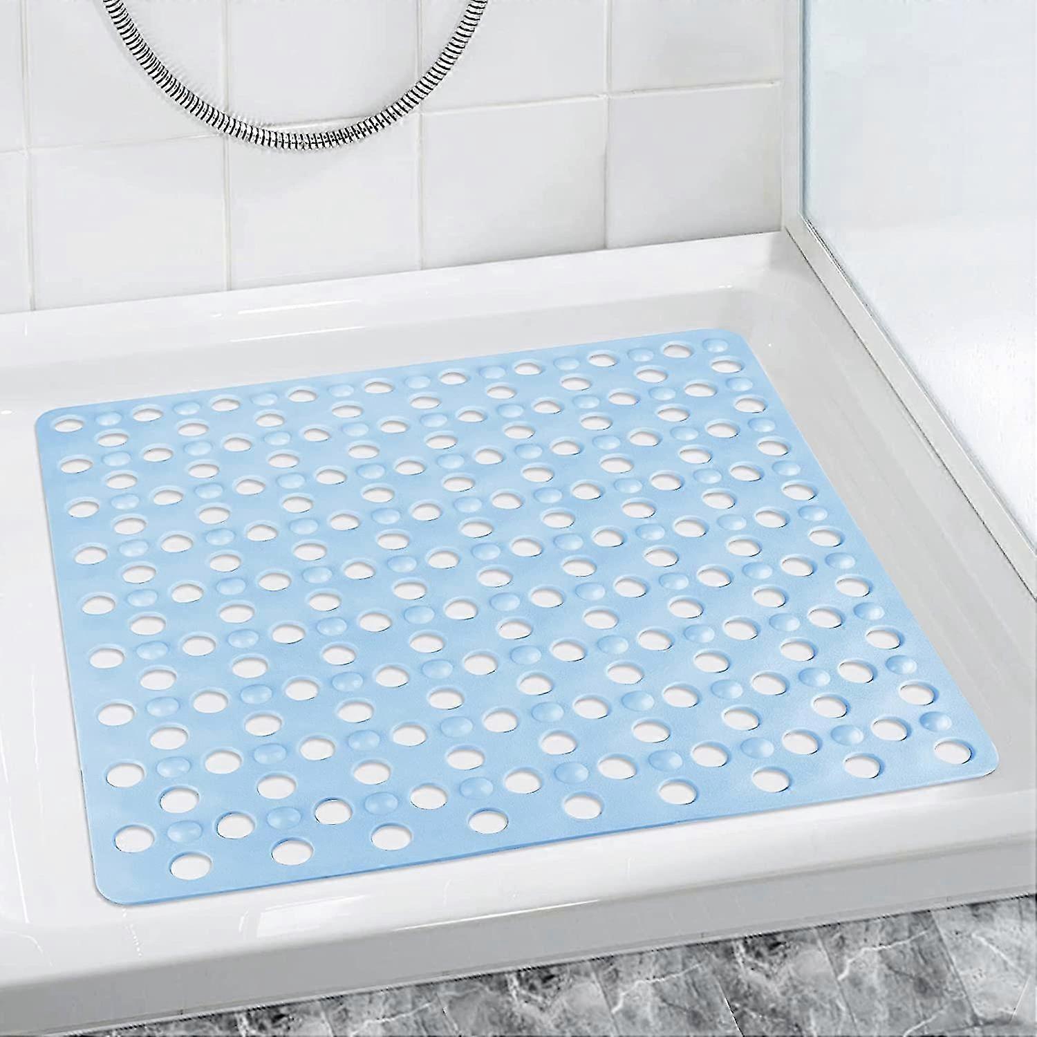 Non-Slip Bath Tub and Shower Mat, 21 X 21 Inches, Stand up Shower Stall Mat Anti Slip with Large Suction Cups and Drain Holes, Machine Washable Square Bath Tub Mat (Blue) <br> <br>【Eco Material】This shower bathtub mat is made from premium soft and flexible PVC material, shower bathtub mat more secure and stable in the shower. Perfect for your children, elderly, and pets to bathe and shower safely. <br> Note: The data are manual measurement, please allow a 1-3cm error, due to the differences between the light and the display, there will be a certain color difference, the specific received in kind prevail. <br>