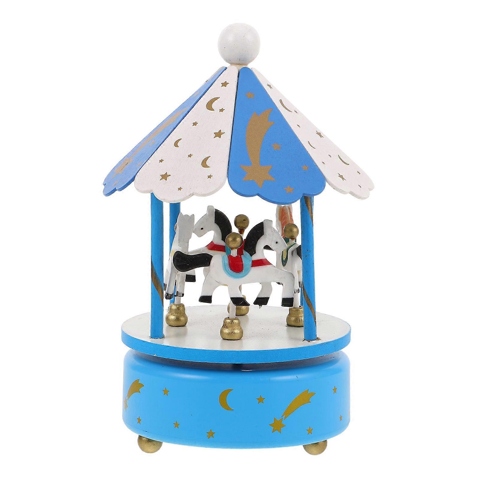 Wind-Up Musical Carousel For Nursery Room Decor Sky-Blue Rotating Animation Handmade Precision 1Pack