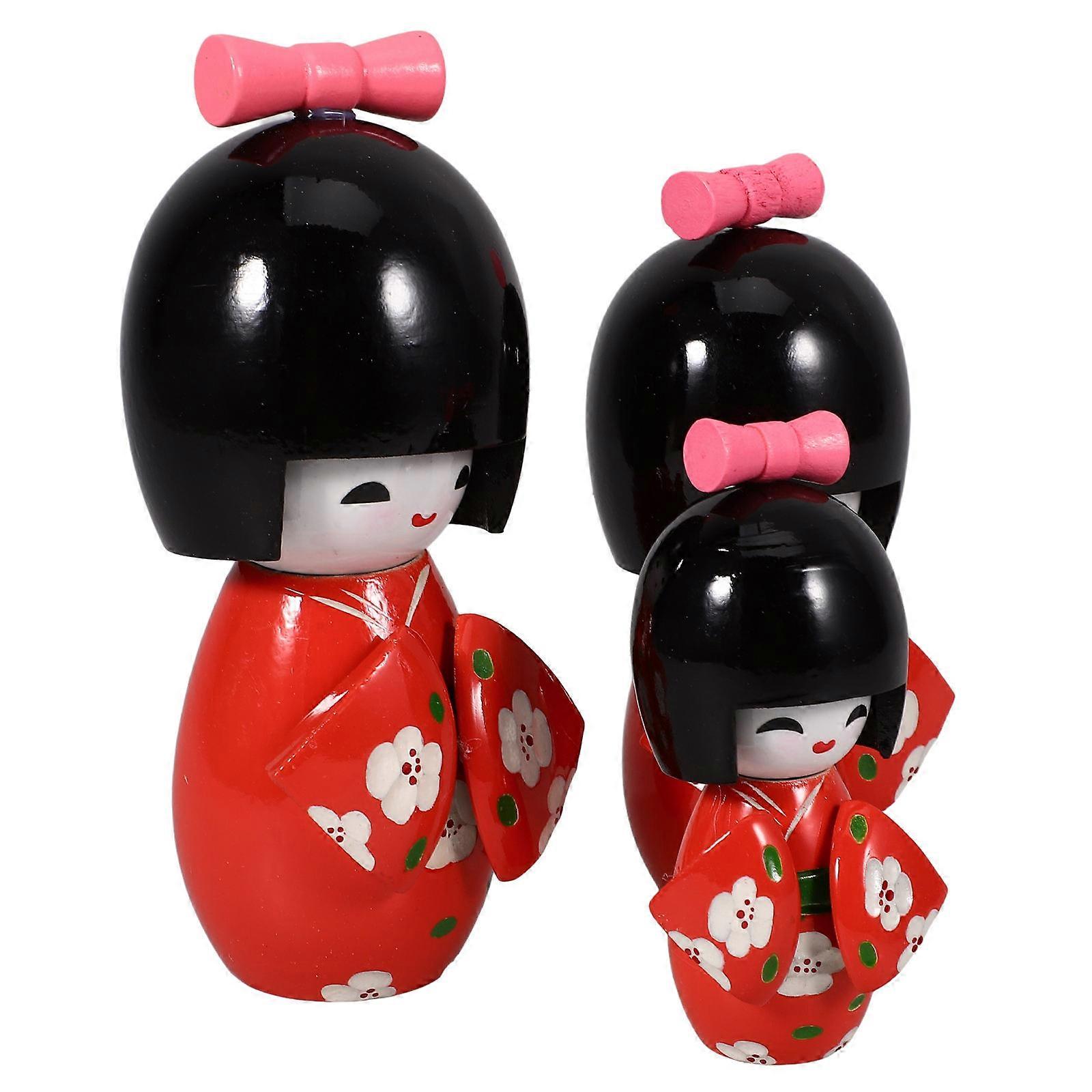 Japanese Traditional Doll Set with 3Pcs Wood Kimono Ornaments