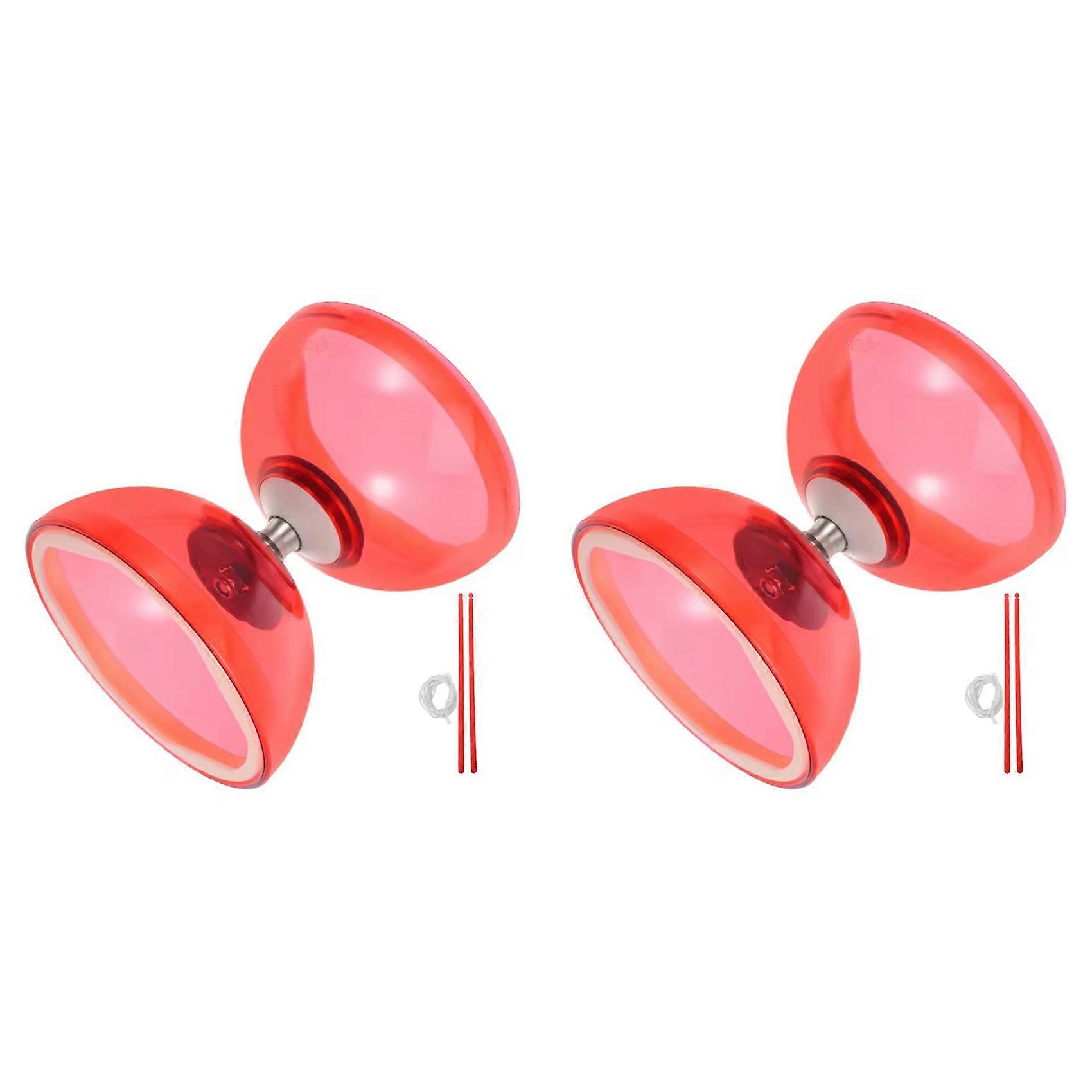 2X Triple Bearing Diabolo Ball Toys Juggling Soft Rubber Double Wheel Kid Kids Outdoor Playset Crystal Tpu Red