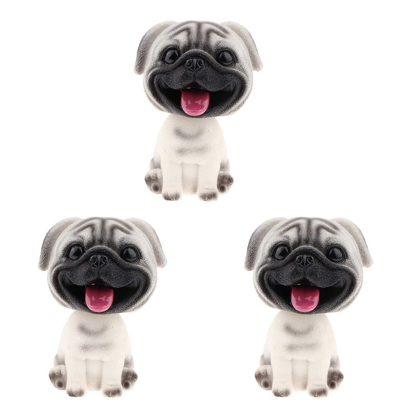 3X Resin Cute Bobble Head Dog Bobbing Head Puppy Figurine Toy Home Home/Car Dashboard for Car Vehicle Decoration - Pug