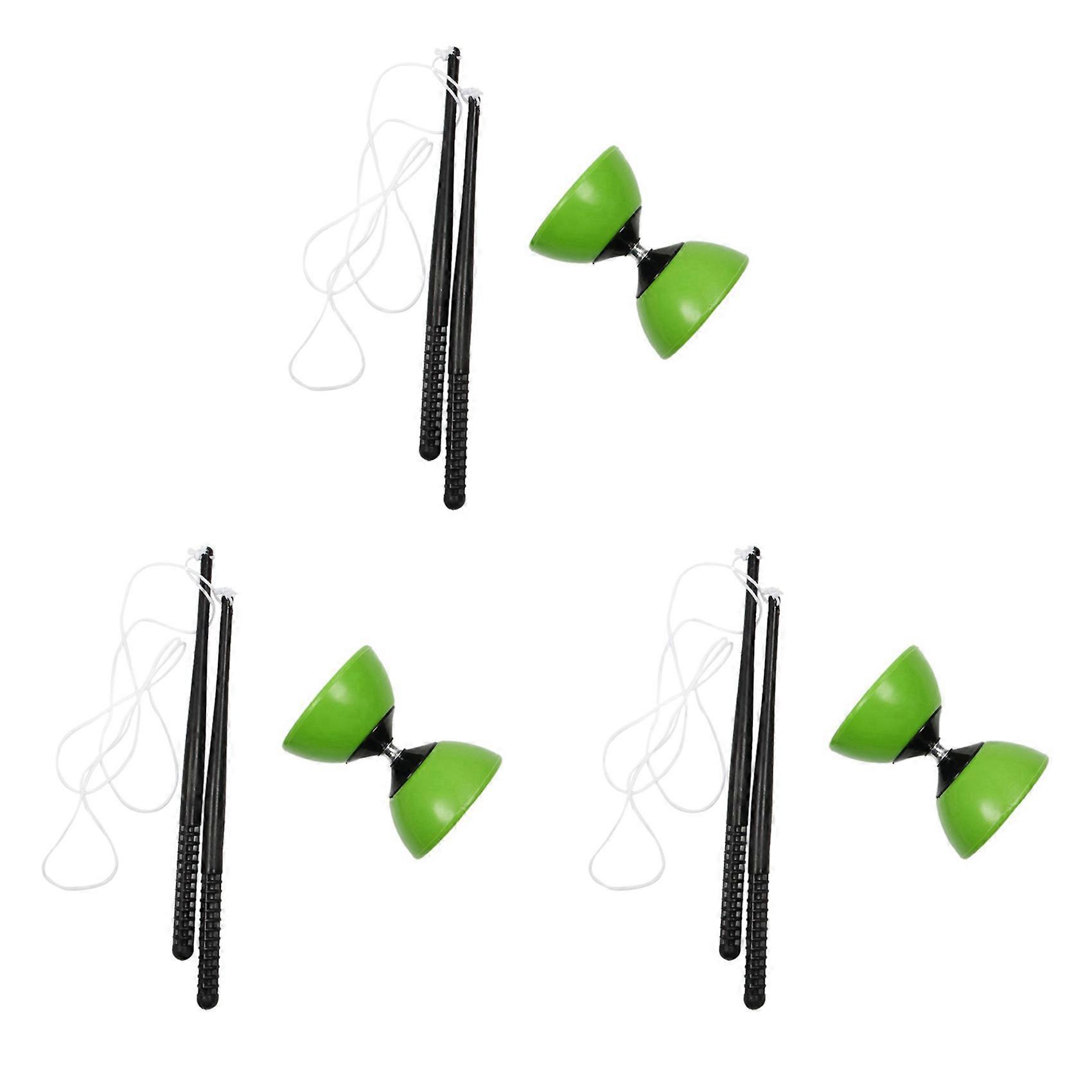 3X Plastic Bowl Diabolo Juggling Spinning Chinese Yo Yo Classic Toy with Hand Sticks Green