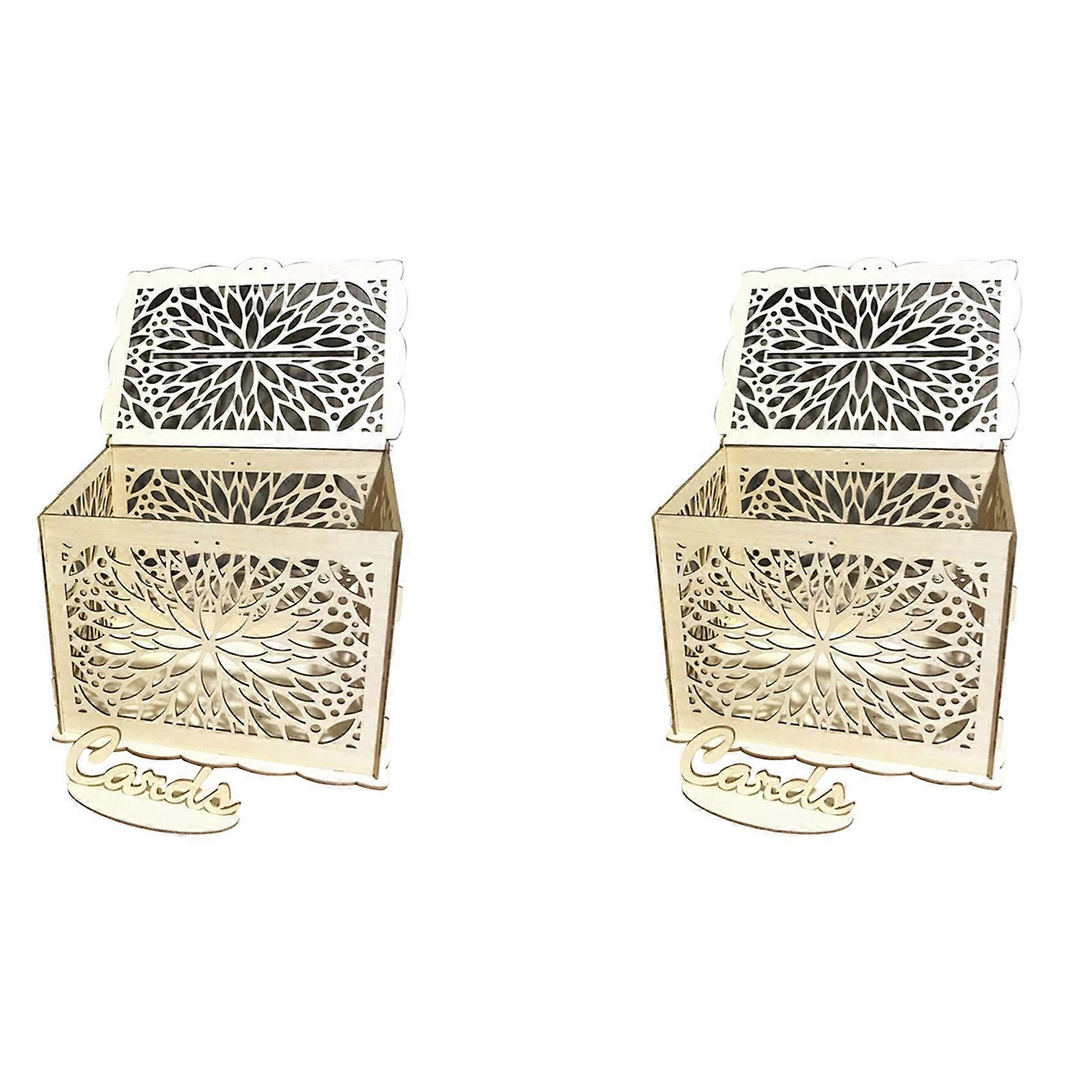 2X Diy Rustic Hollow Wooden Knot Wedding Gift Card Box Money Letter Box Wedding Party Sign in Box Large