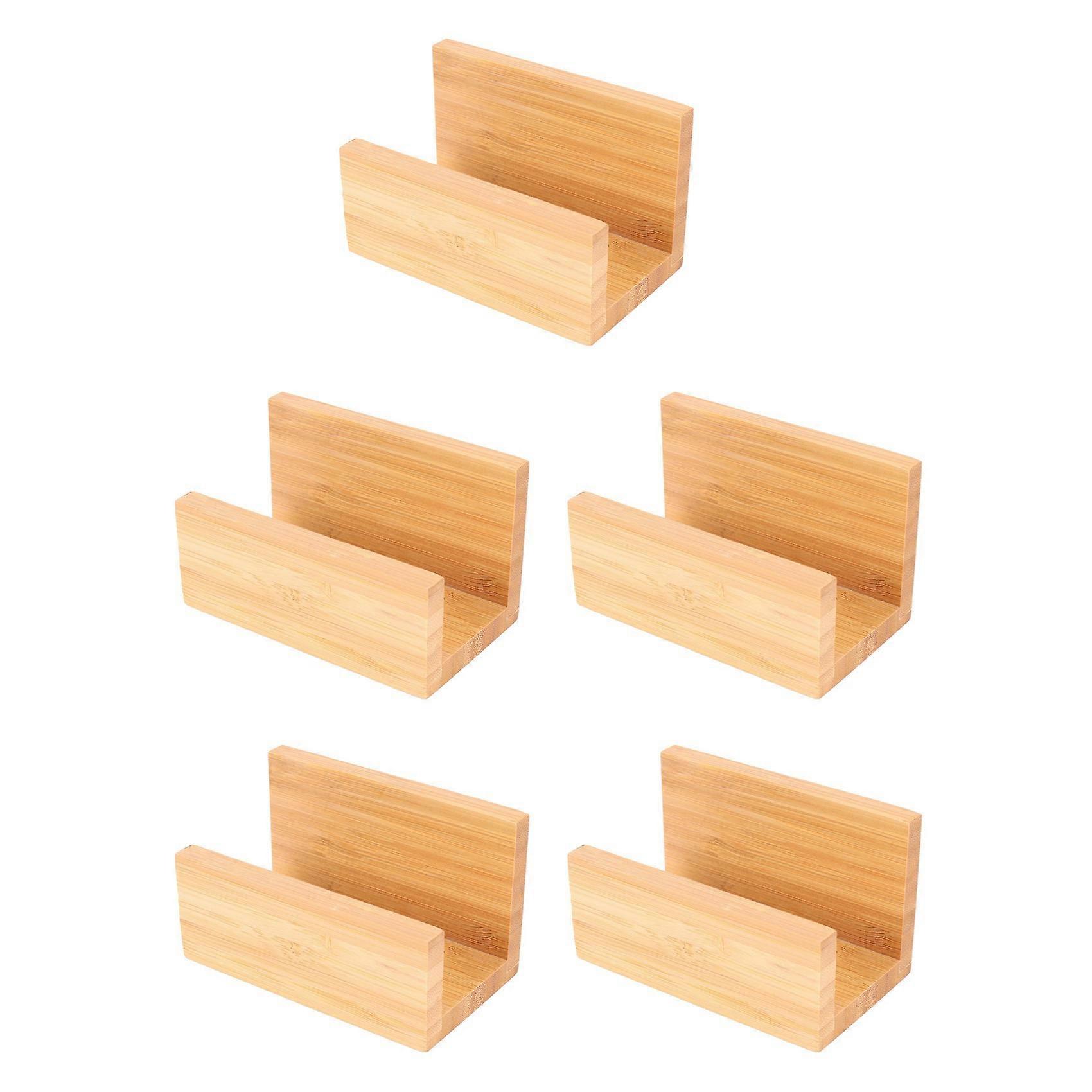 5X Bamboo Wood Desktop Business Card Holder for Desk Sturdy Business Card Display Stand for Office for Men Women
