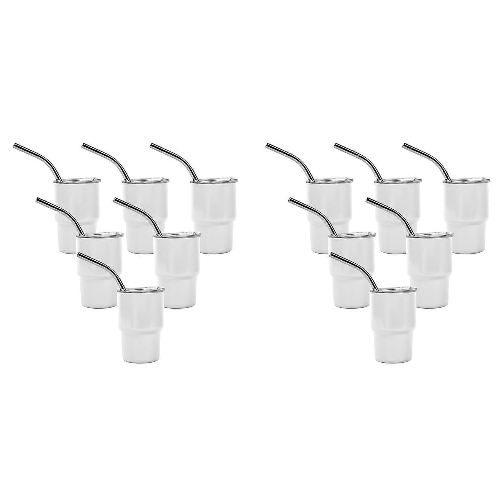 12PCS Mini 3oz Tumbler Shot Glass with Straw and Lids , Sublimation Double Layer Shot Glasses Set for Drinks, Coffee