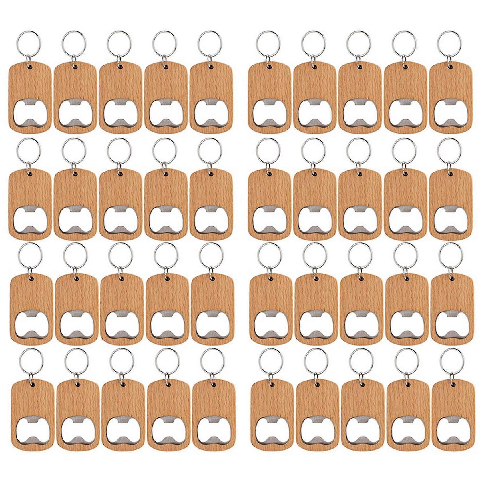 40Pcs Wood Bottle Opener Wooden Keychain Bottle Openers Blanks Wood Engraving Key Chains Key Tag for DIY Crafts
