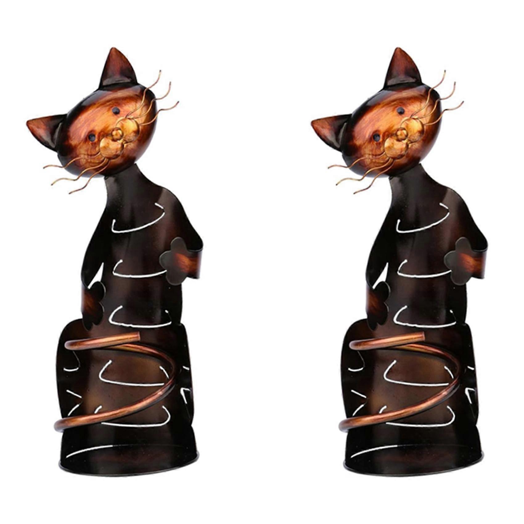 2X Cat Wine Holder Rack Cat Shaped Wine Holder Stand Metal Decorative Cat Wine Bottle Holder Sculpture