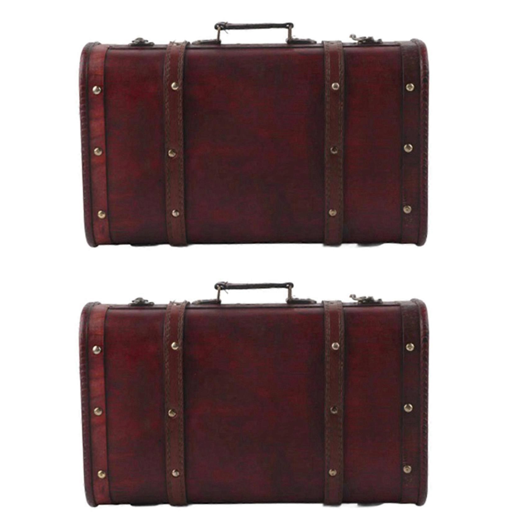 2X Portable Vintage Wooden Decorative Suitcase Antique Wooden Case Photography Props Craft Decoration Wood Box Ornament