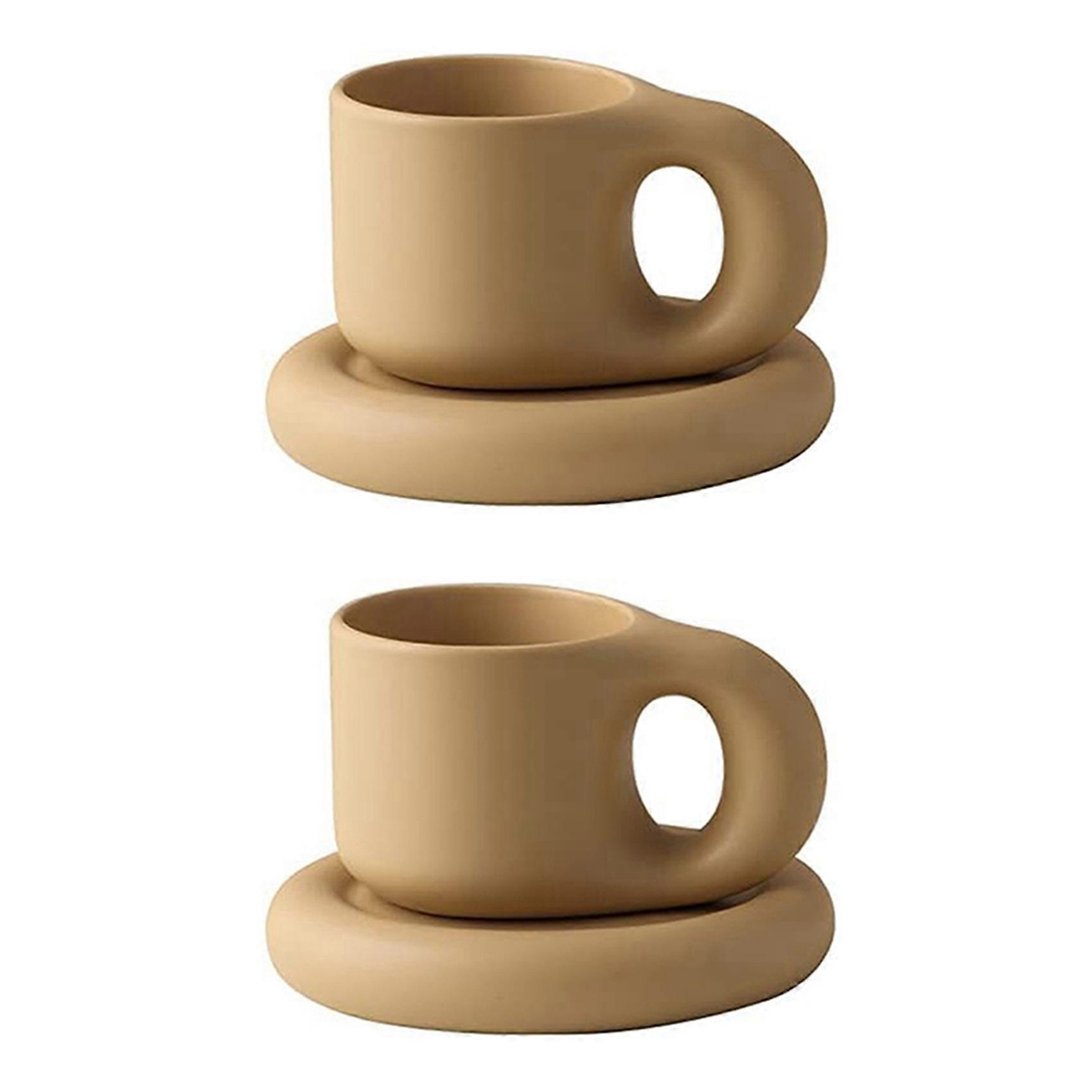 2X Ceramic Mug Chubby Coffee Mug Cute Tea Cup with Saucer Novelty Cute Fat Handle Cup Set for Home Decor Office