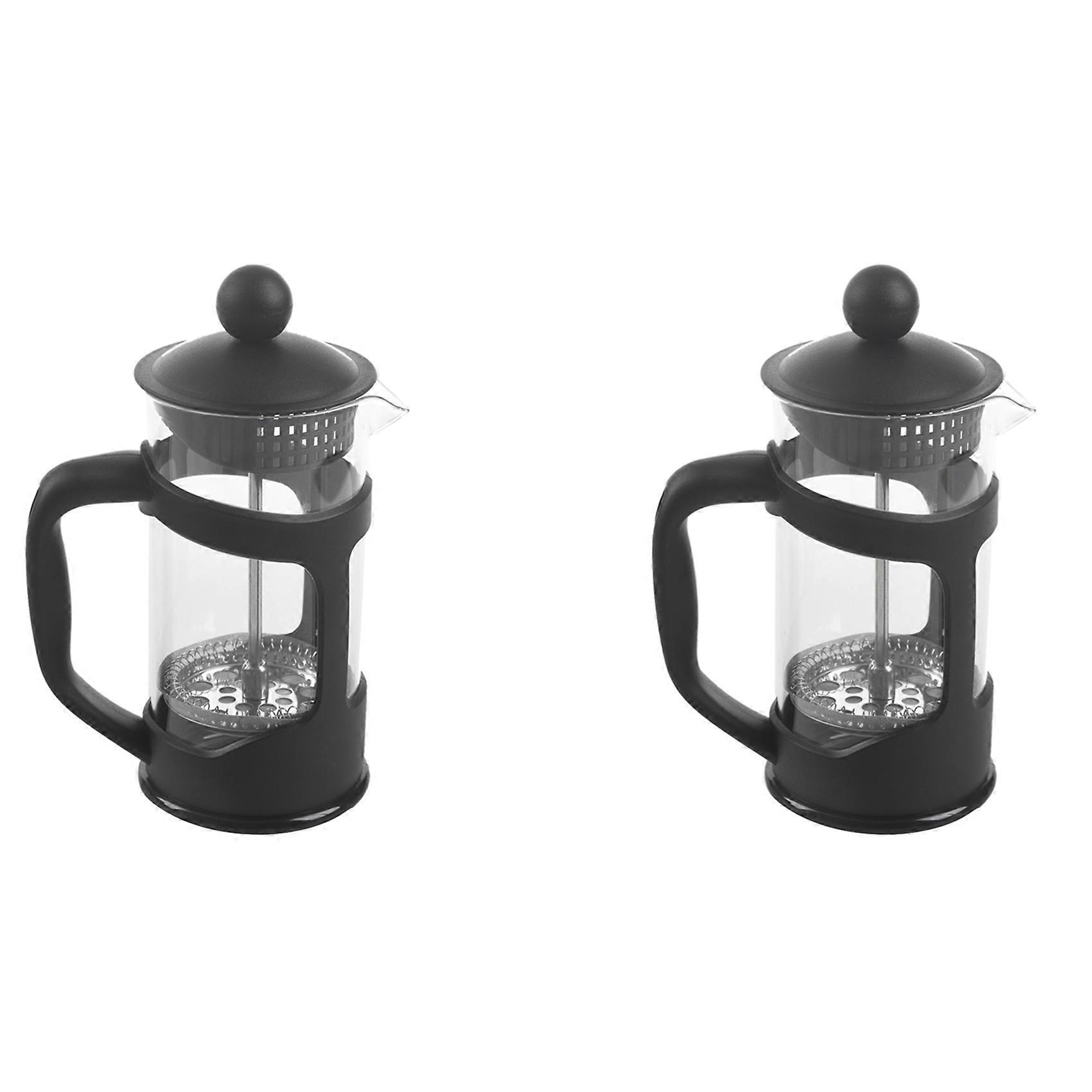 For your morning cup of coffee. Easy brewing, exceptional filtration, quick clean-up, and sleek design all combine to give you everything you want in your french press. Perfect to make fresh coffee, tea, espresso, or cold brew Brewing couldn't be easier. Just spoon course grounds into the carafe, add boiling water, allow to steep for 4 (four) minutes, and strain for the perfect cup. Use at home, the office, the campsite, or anywhere with access to boiling water Extract all of the essential oils from your coffee grounds to capture the pure flavor with this classic brewing method. Premium multi-level filtration technology filters out all the coffee grounds, giving you an amazingly smooth cup of coffee. Enjoy maximum flavor for the best tasting cup of coffee you've ever experienced STYLISH AND DURABLE DESIGN: Features a shatter-resistant carafe, fine stainless steel mesh screen, and comfortable handle design. When breakfast is over, just rinse out the grounds and toss your disassembled French Press into the dishwasher for easy clean up. And has a 2 (two) cup/12 fluid ounce/0.4 liter capacity With a shatter-resistant carafe, fine stainless steel mesh screen, and comfortable handle design this is going to be your favorite kitchen appliance. When breakfast is over, just rinse out the grounds and toss it into the dishwasher for easy clean up. Colour: Black Material: glass + plastic Capacity: 350ml Size: with packaging 17 x 7.5cm Package Contents: 2 x coffee maker