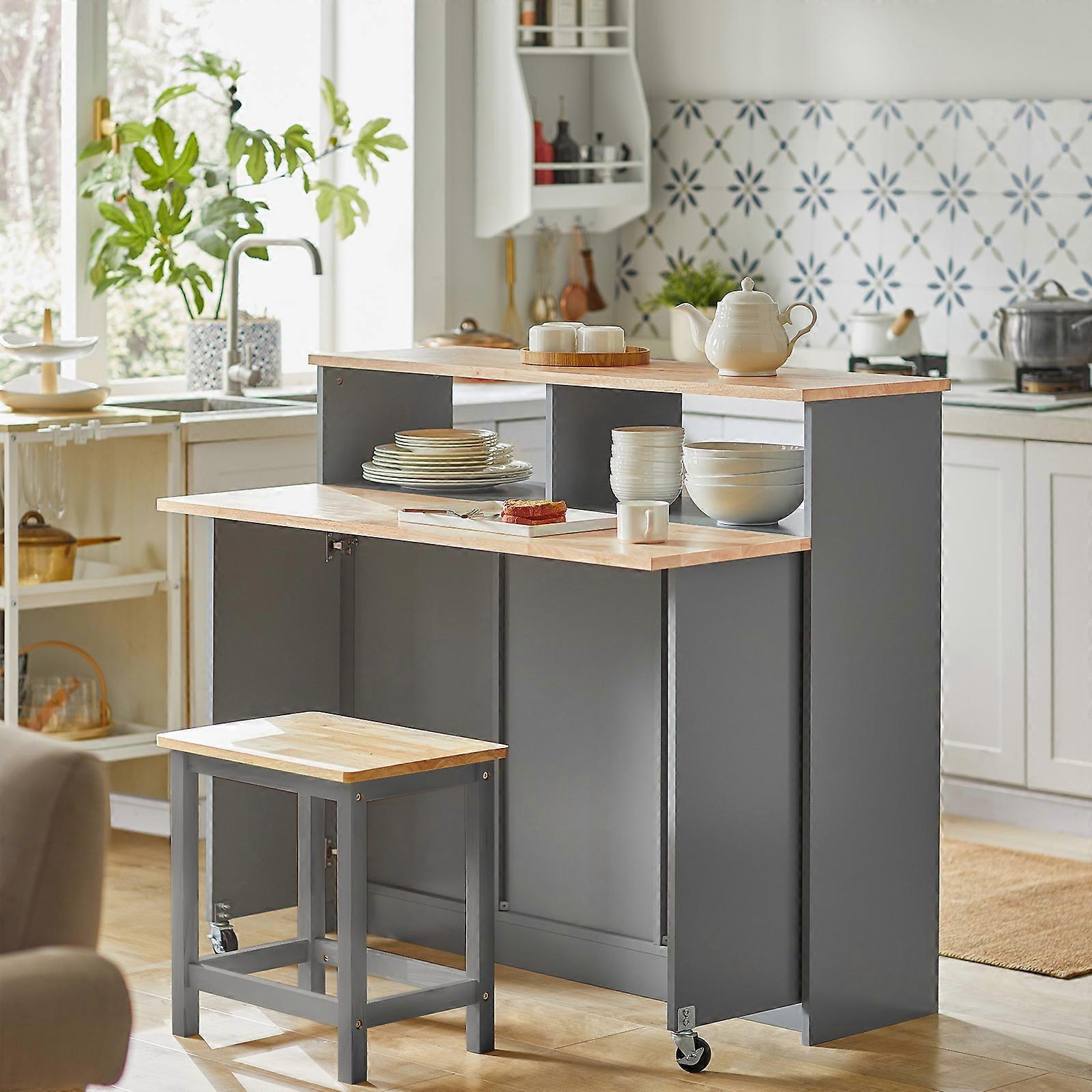 SoBuy FSB36-HG,Kitchen Island Sideboard with Sliding Doors and Foldable Worktop Storage Cabinet Cupboard Multifunctional Kitchen Storage Unit