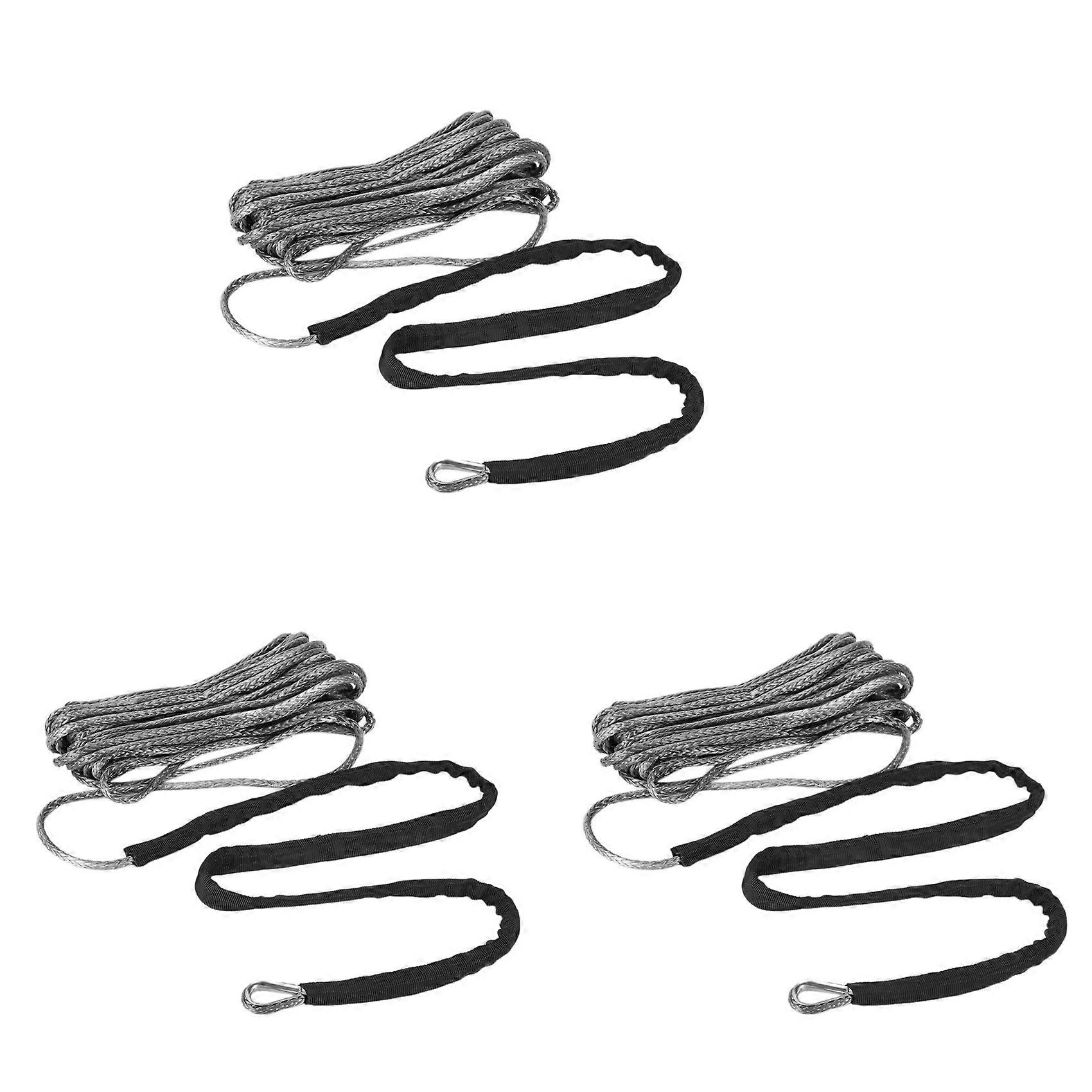 3pcs 3/16 Inch X 50 Inch 7700LBs Synthetic Winch Line Cable Rope with Protecing Sleeve for ATV UTV (Grey)