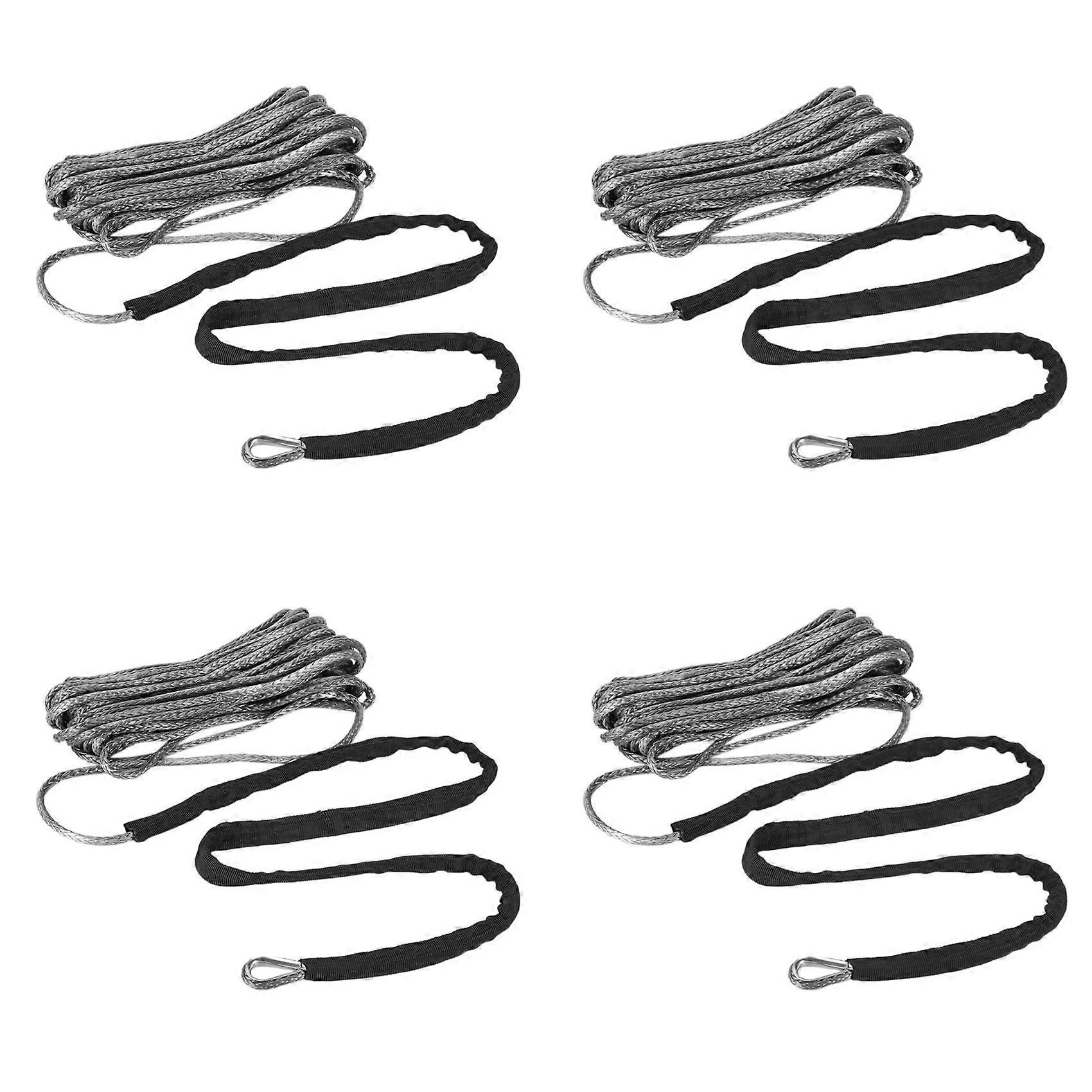 4pcs 3/16 Inch X 50 Inch 7700LBs Synthetic Winch Line Cable Rope with Protecing Sleeve for ATV UTV (Grey)