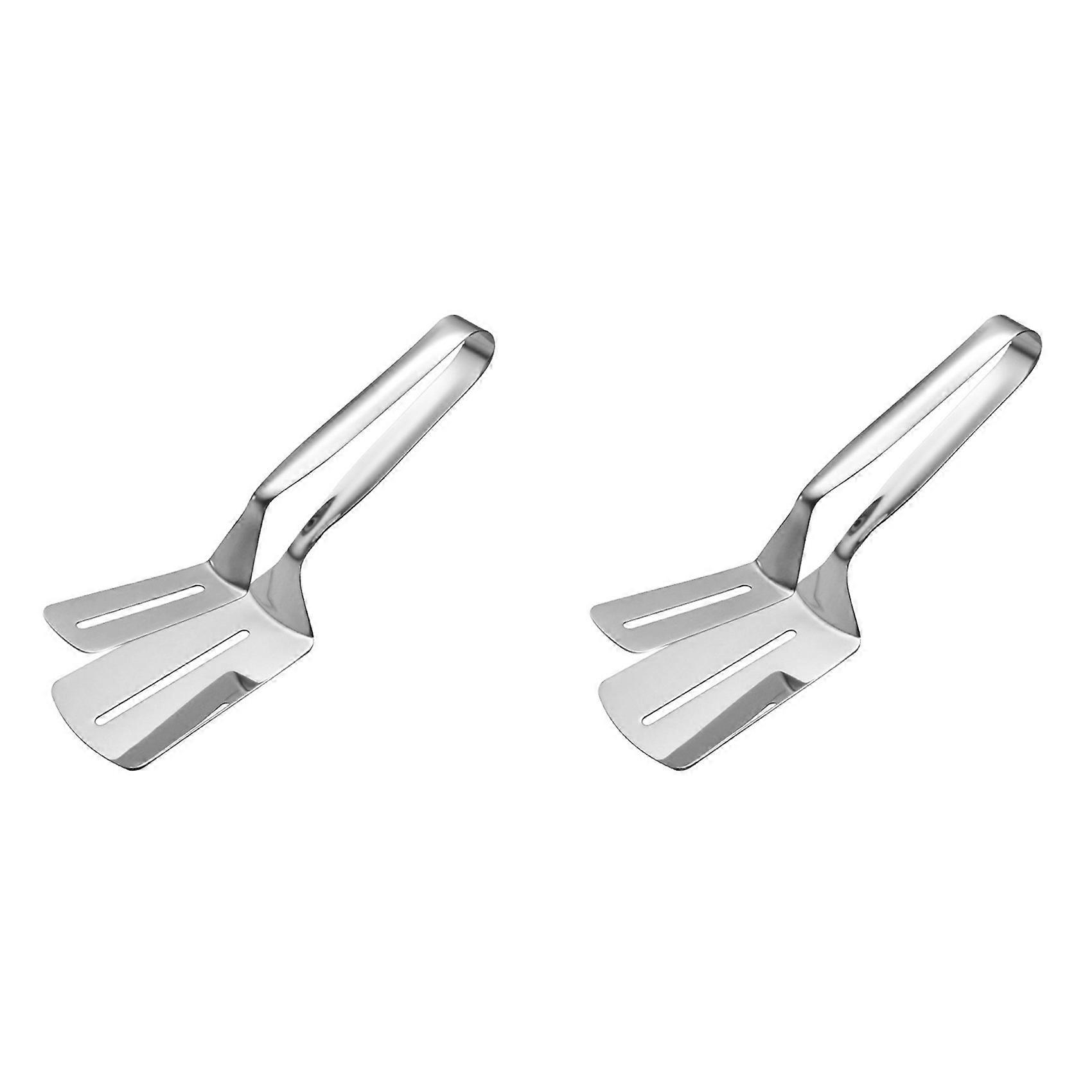 2X Stainless Steel Double-Sided Shovel Clip, Stainless Steel Spatula Kitchen Tongs,Grill Clamp Flipping Spatula Clip