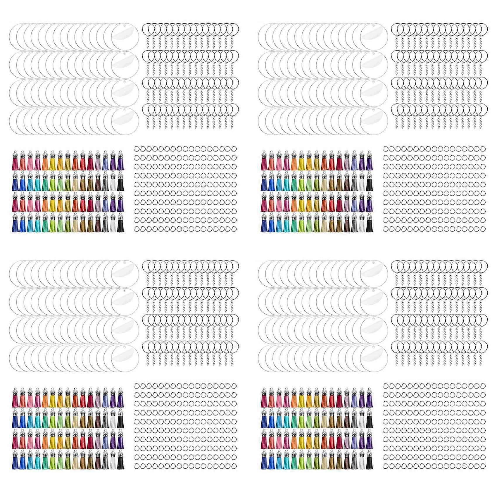 [1400Pcs Acrylic Keychain Making Kit]Acrylic keychain blank set is great for vinyl projects, DIY crafts, and keychain making. With this 2-inch acrylic keychain blanks DIY supplies, you can make a unique keychain for your friends and your family. [Widely Applications]Acrylic clear round keychain blanks can be used to draw, glue photos, paste, engrave stickers. 2-inch acrylic keychain blanks with holes and comes with random colors tassels that can be made into labels, key chains, backpack bags tags, ornaments, gifts tags, zipper pulls, pendant decorations, souvenirs. Blank keychains are perfect for birthdays, holidays, celebrations, weddings, or other occasions to increase the atmosphere. [High-Quality Material]The acrylic blanks for vinyl projects are made of thick acrylic material, lightweight, smooth and durable. The keyrings and jump rings are made of quality material durable, and shiny. The colorful tassel pendant is made of a plastic cap and leather suede, soft and gorgeous. DIY acrylic keychain supplies of high-quality material and exquisite workmanship make your decoration more unique and beautiful. [Easy to Use]In order to ensure that the acrylic circle blanks will not be scratched or dirty, there is a white protective film on both sides, please gently peel off when using, you will get clear acrylic keychains blanks, then you can enjoy painting on the clear round acrylic blanks to design your favorite style. [Creativity and Fun]Acrylic keychain blanks makes you have a chance to enjoy life, they can help you relax in your leisure time and enhance your creativity and improve your artistic skills. You can also create with your children to explore and stimulate your child's creativity during the process of creation. 2 inches round acrylic keychain blanks are also perfect presents for Valentine's Day, Father's Day, Mothe
