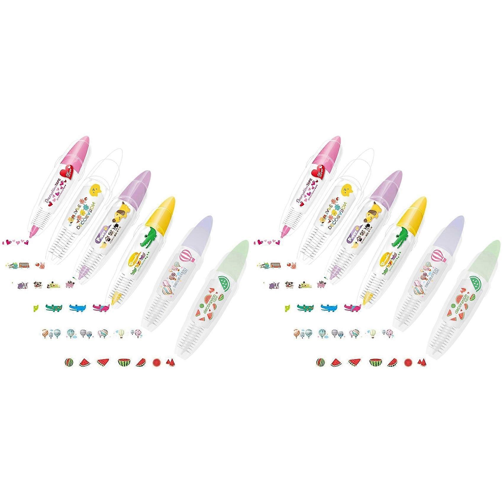 12PCS DIY Cute Animals Press Type Decorative Pen, Cute Animals Lace Correction Tape Decorative Tape Pen