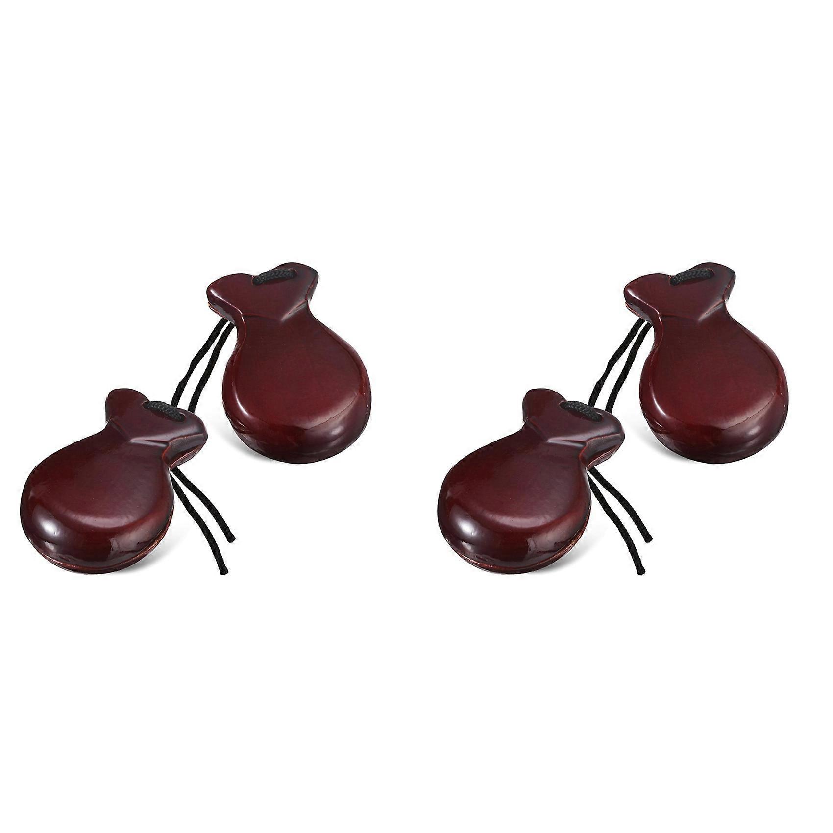 2 Pair Spanish Castanets Flamenco Castanets with String Traditional Wood Hand Percussion Castanets(Brown)