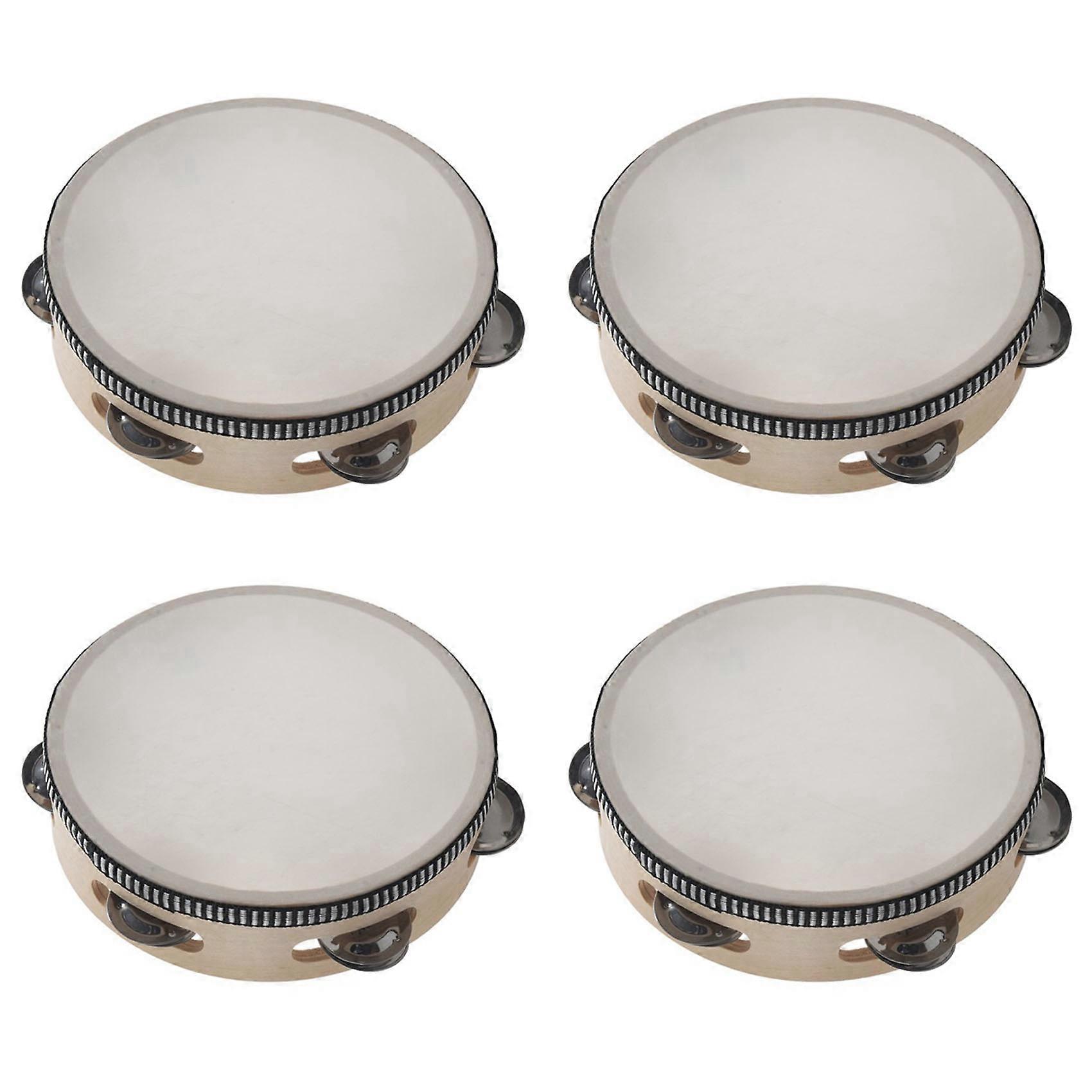 4pcs 6 Inches Early Education Teaching Aids Hand Tambourine Children Percussion Tambourine Dance Hand Drum with 4 Bells