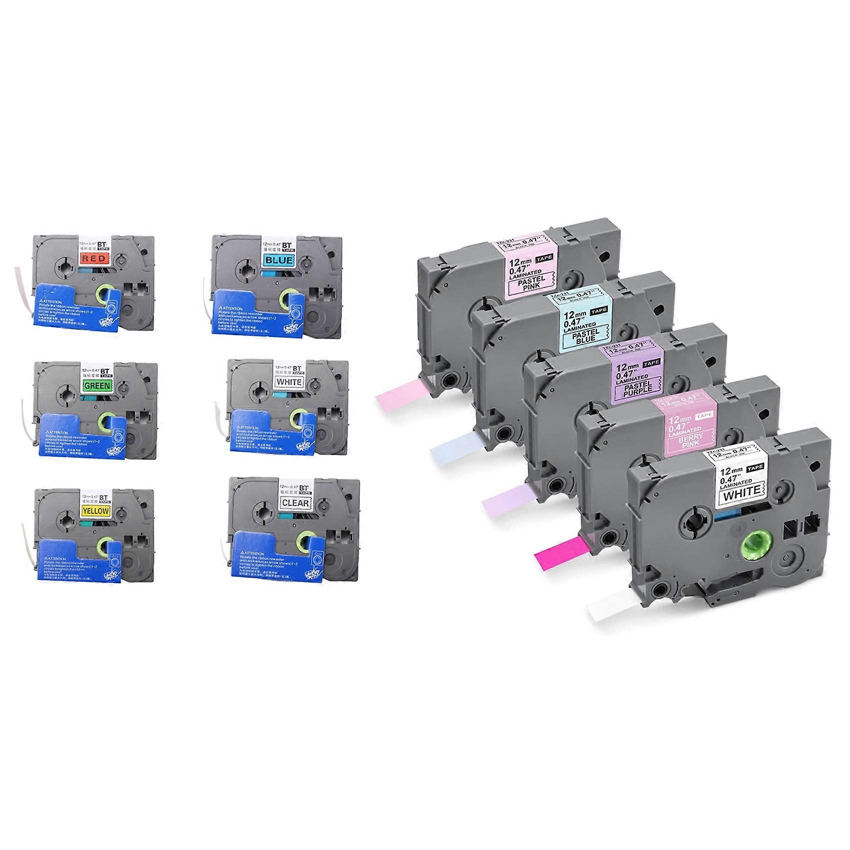 6PCS 12mm Lableing Tapes for Brother P-Press PT-D210 & 5x Label Tape for P-Touch 12mm 1/2 Inch Laminated