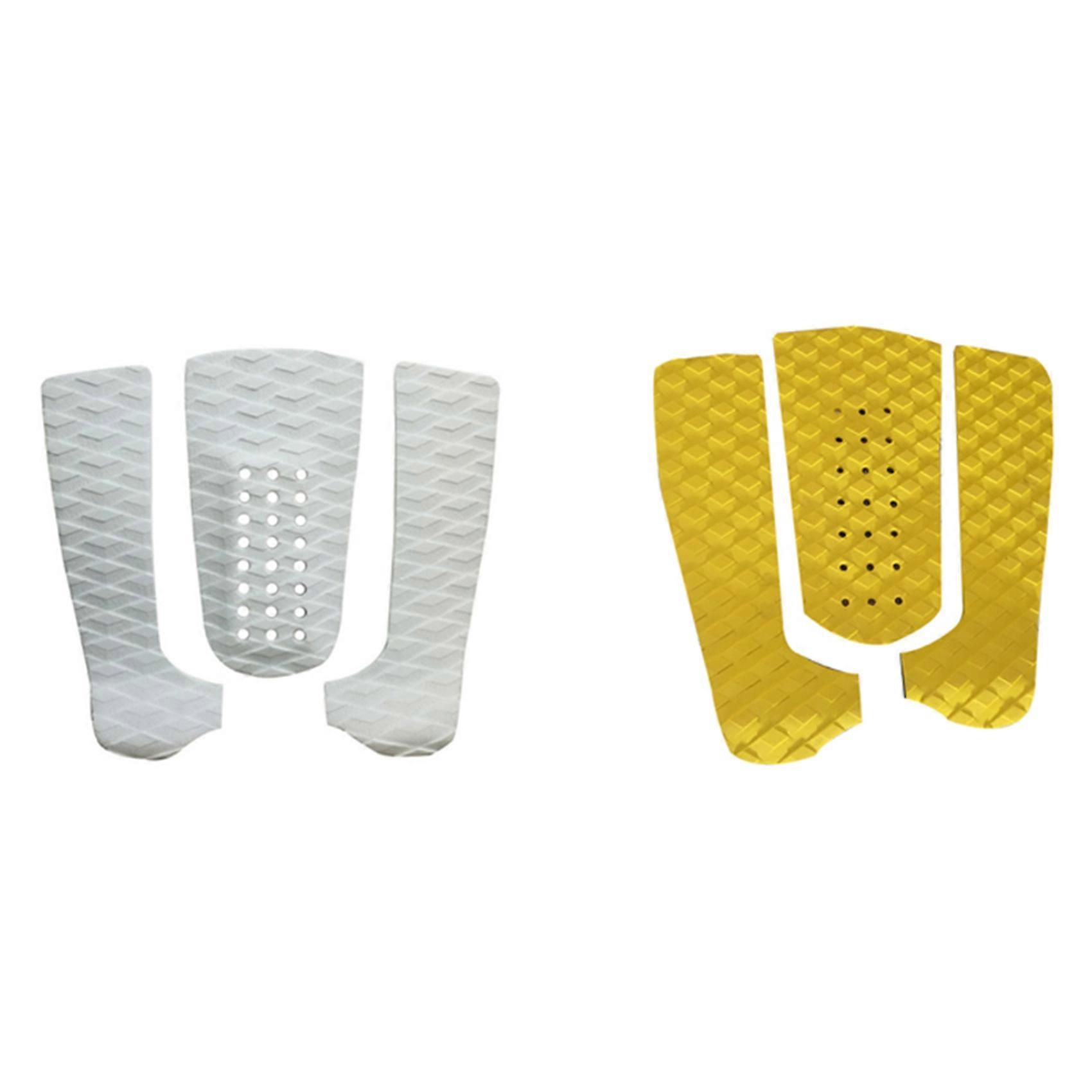 2set Surfboard Traction Pad Anti-Slip Resistant Adhesive EVA Grip Surf Deck Tail Pads Three-Piece Yellow/ White