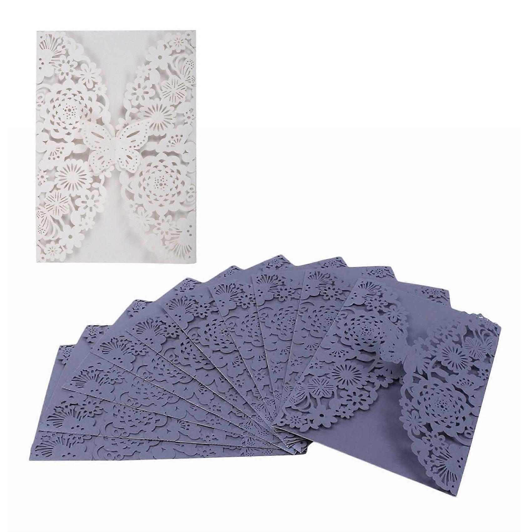 20Pcs Delicate Carved Butterflies Romantic Wedding Party Invitation Card Envelope Invitations White & Silver Charcoal