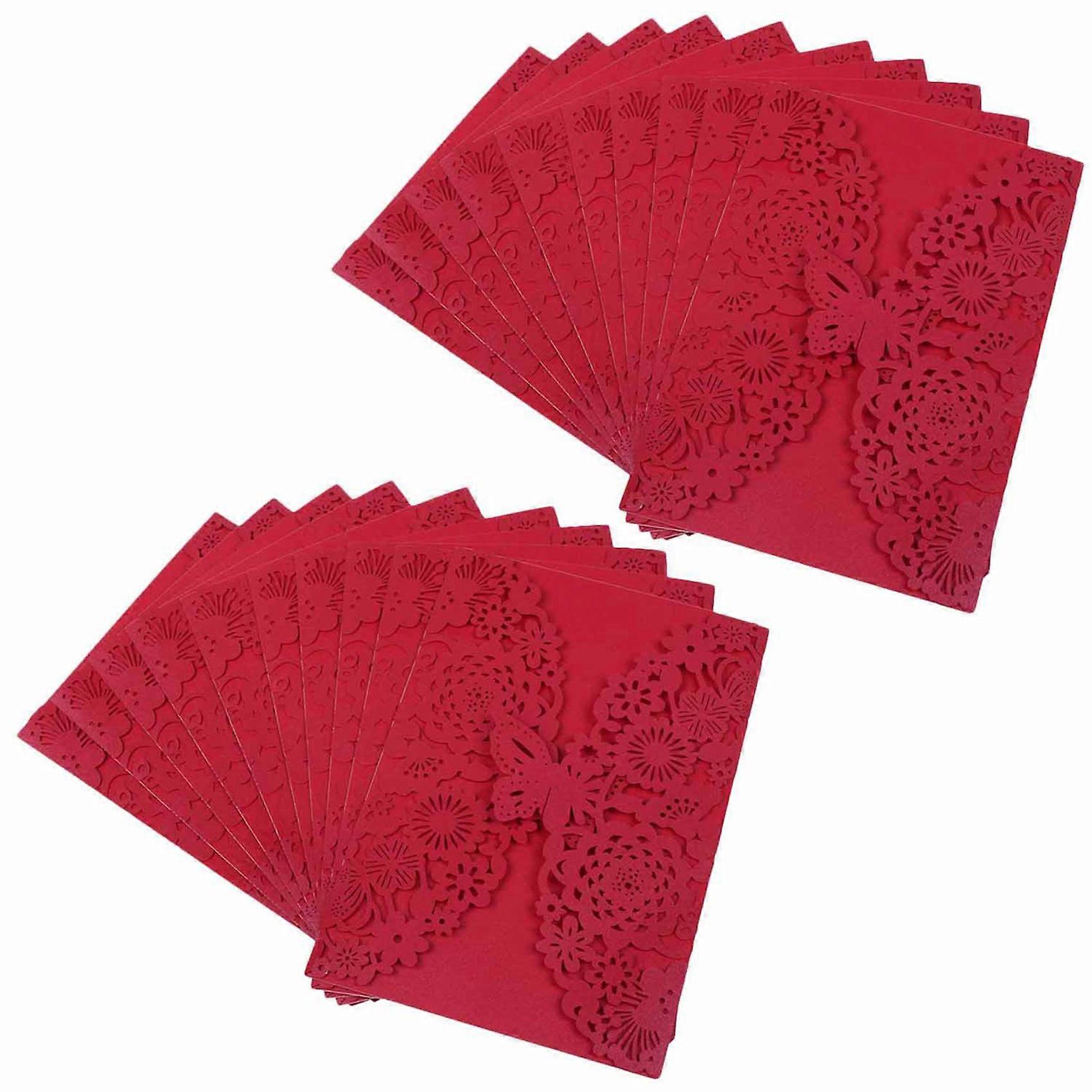 20x Delicate Carved Butterflies Romantic Wedding Party Invitation Card Envelope Invitations for Wedding:Red