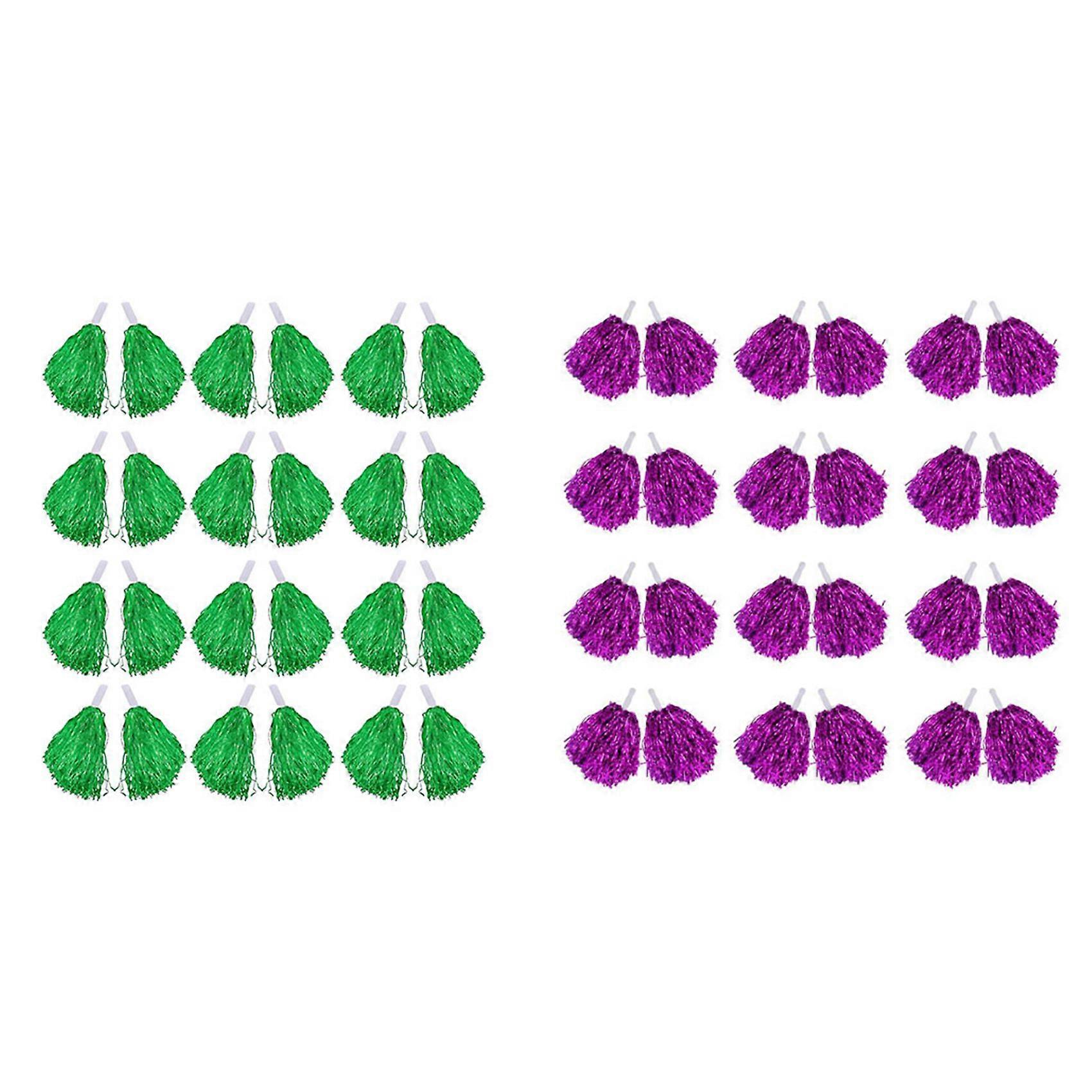 48 Pcs Cheerleading Pom Poms Metallic Foil Cheer Pom Poms with Plastic Handle, 24Pcs Purple & 24Pcs Green