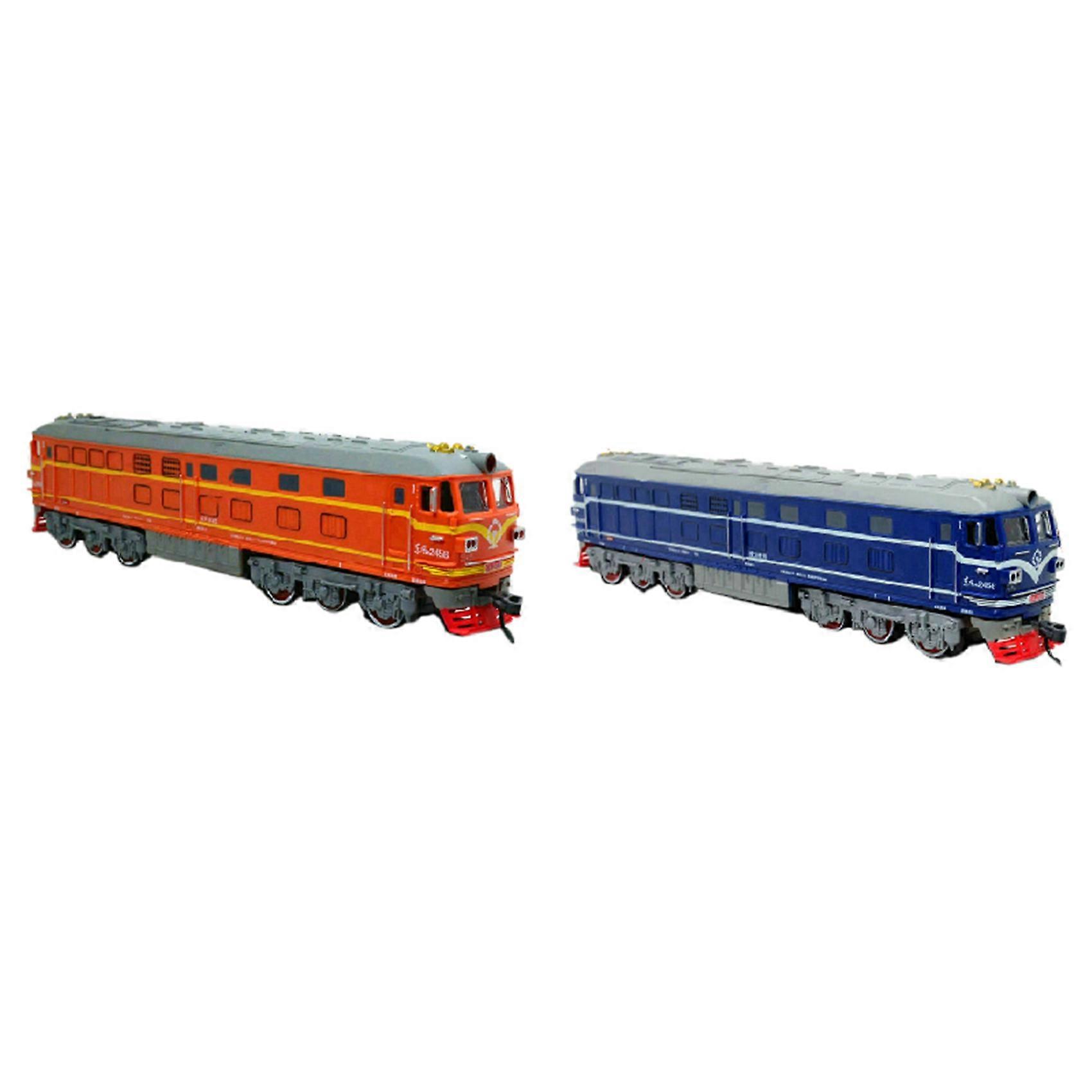 2 Pcs Simulation 1:87 Internal-Combustion Locomotive Model Toy Acousto-Optic Train Toys for Children Gift, Blue & Orange