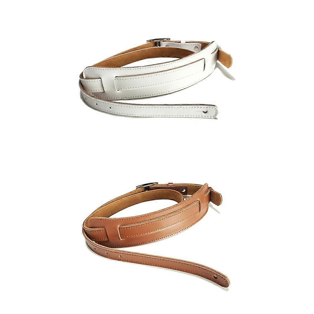 2x Leather and Metal Buckle Electric Guitar Strap Belt Shoulder Pad Adjustable Guitar Straps-White Color & Brown Color