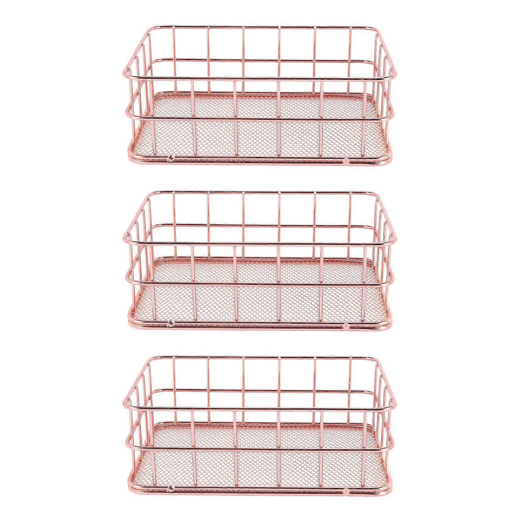 3X Storage Basket Metal Wire Bathroom Shelves Makeup Organiser Rose Gold Brush Pen Holder Wire Mesh Storage Basket