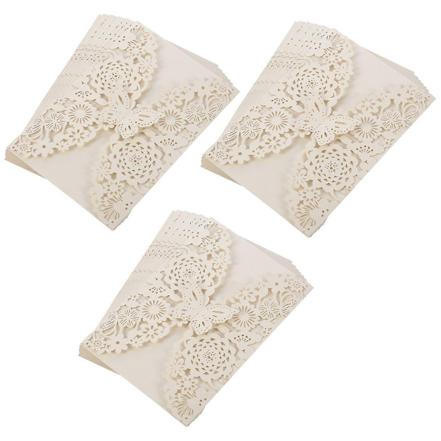 30Pcs/Set Delicate Carved Butterflies Romantic Wedding Party Invitation Card Envelope for Wedding:Ivory White