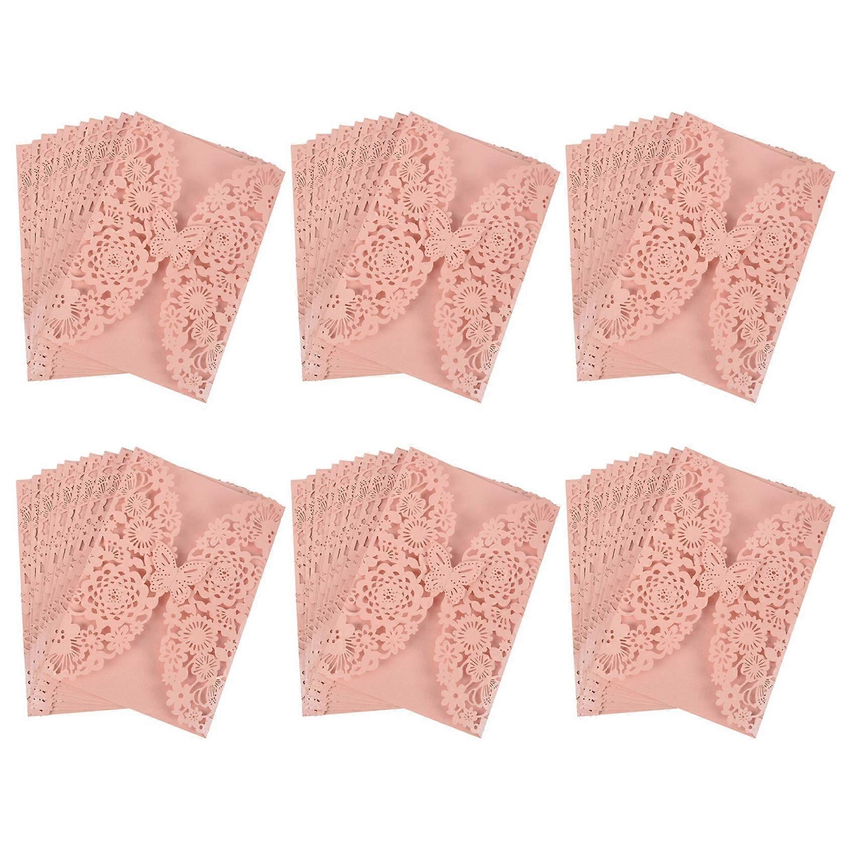 60Pcs/Set Delicate Carved Butterflies Romantic Wedding Party Invitation Card Envelope Invitations for Wedding:Pink
