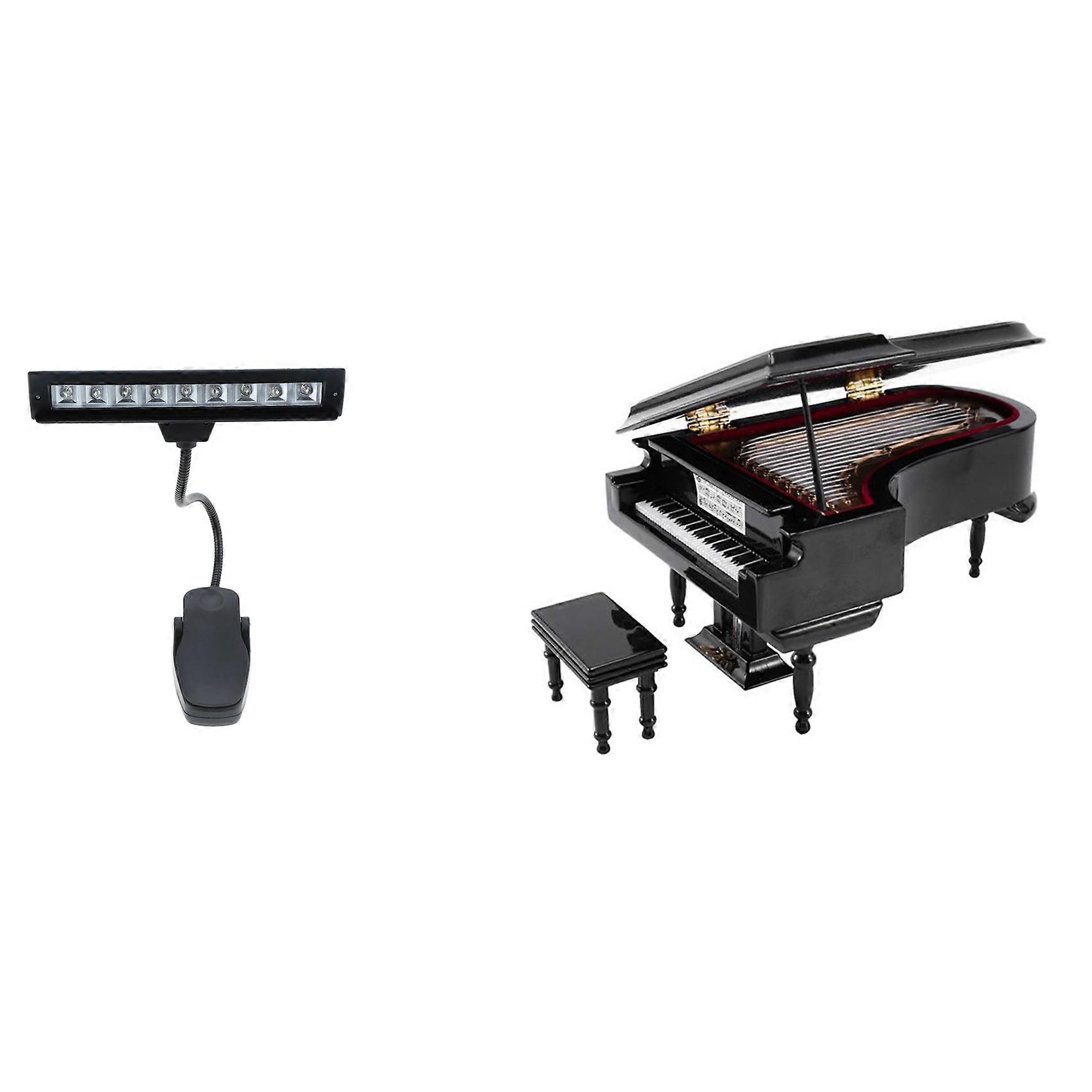 1 Set 9 LEDs LED Reading Lamp Desk Clip Lamp & 1 Set Miniature Grand Piano Model Kit Musical Instrument with Chair