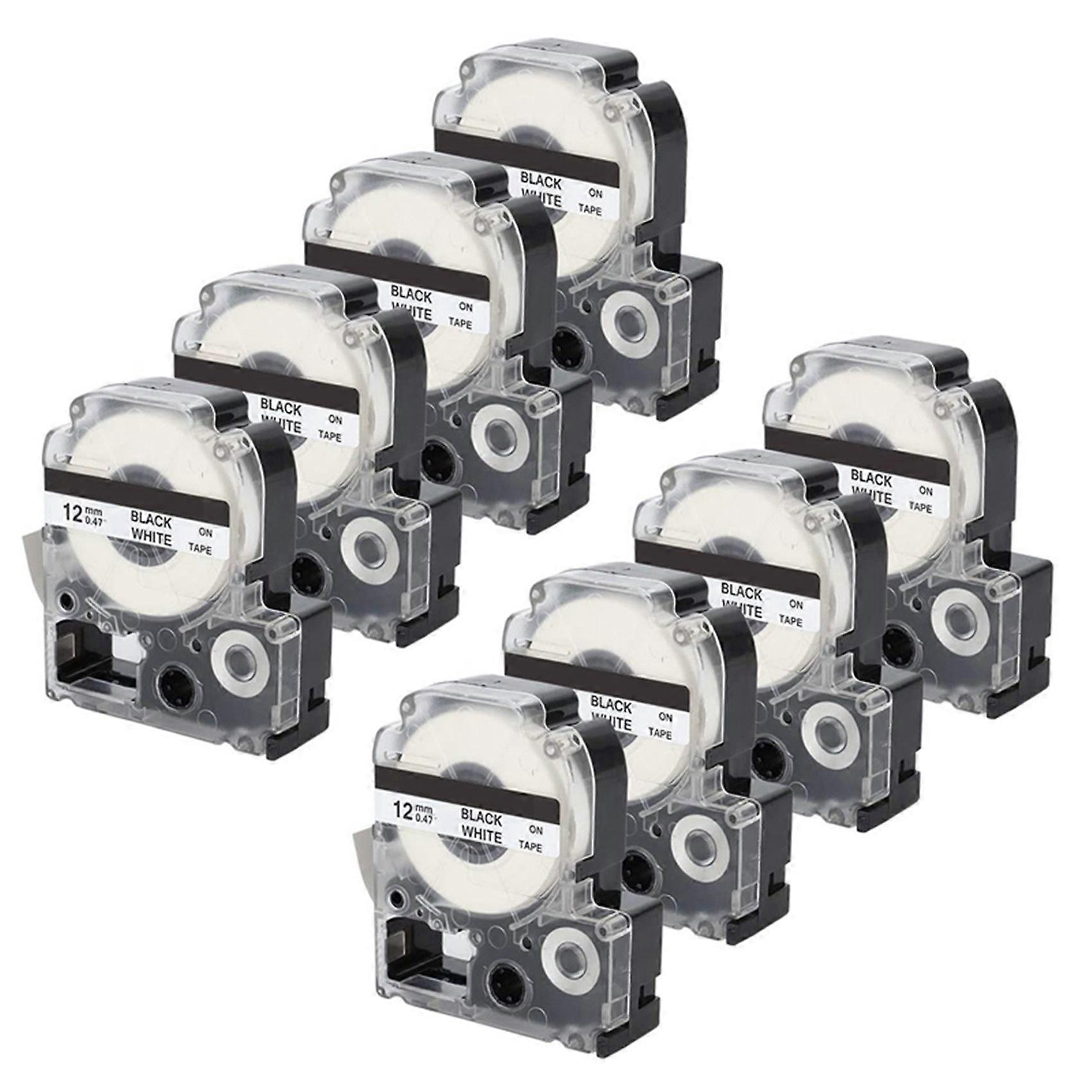 8 Pack Compatible Label Tape Replacement for Epson LK-4WBN (SS12KW) Label Tape Cartridges Black on White Tape