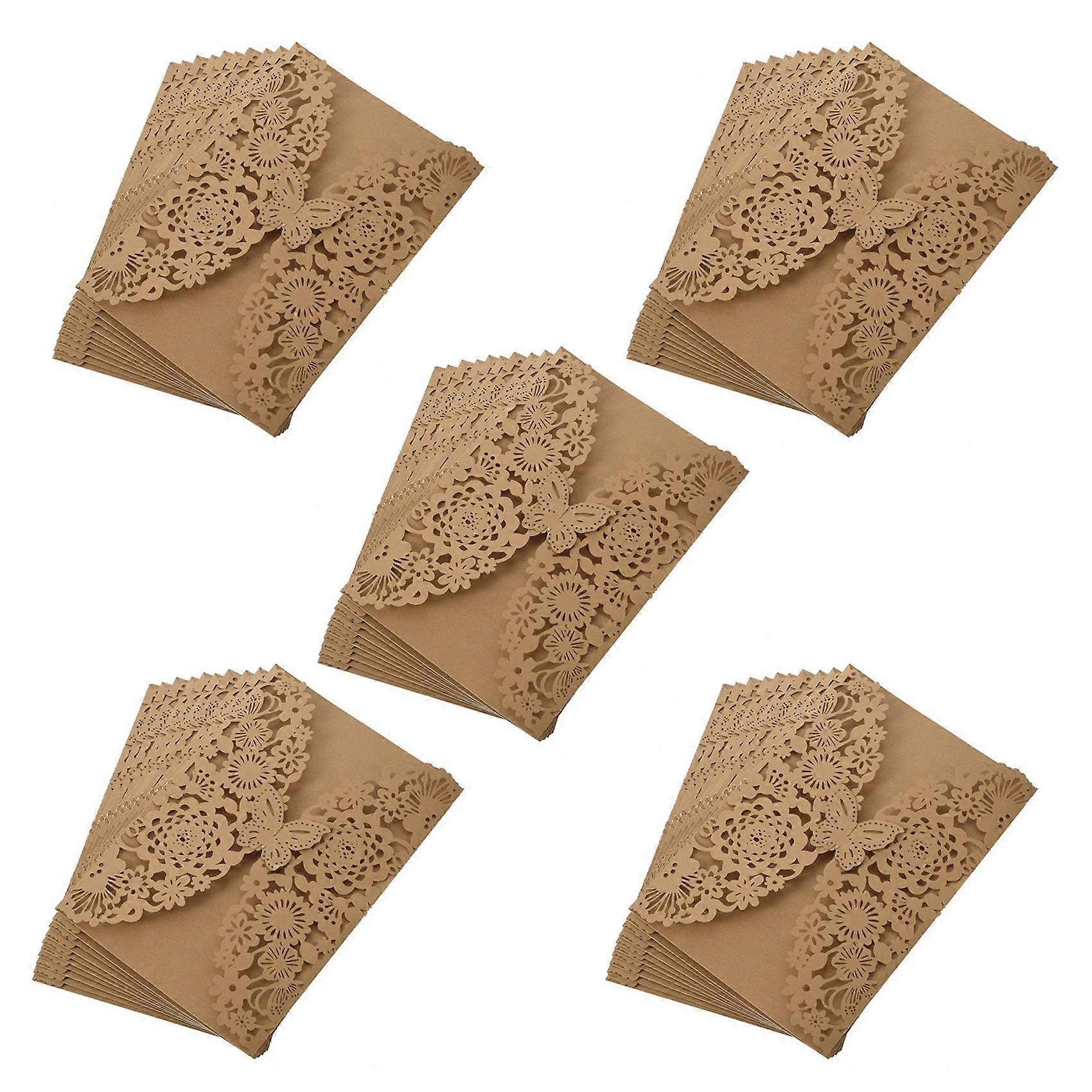 50Pcs Delicate Carved Butterflies Romantic Wedding Party Invitation Card Envelope Invitations for Wedding:Golden Beige