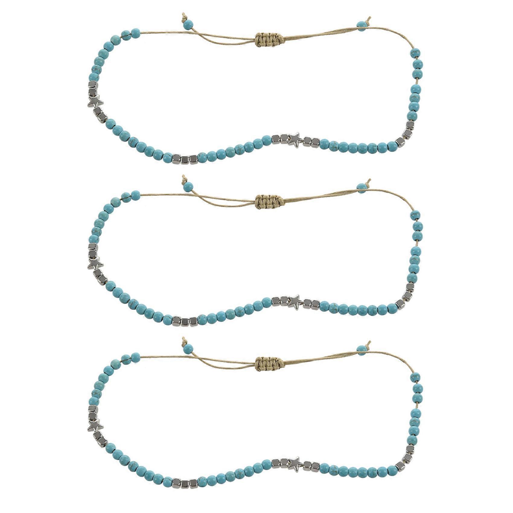 3X Bohemian Star Beads Stone Anklets for Women Vintage Woven Rope Pendant Bracelet on Leg Anklet Beach Ankle Jewelry