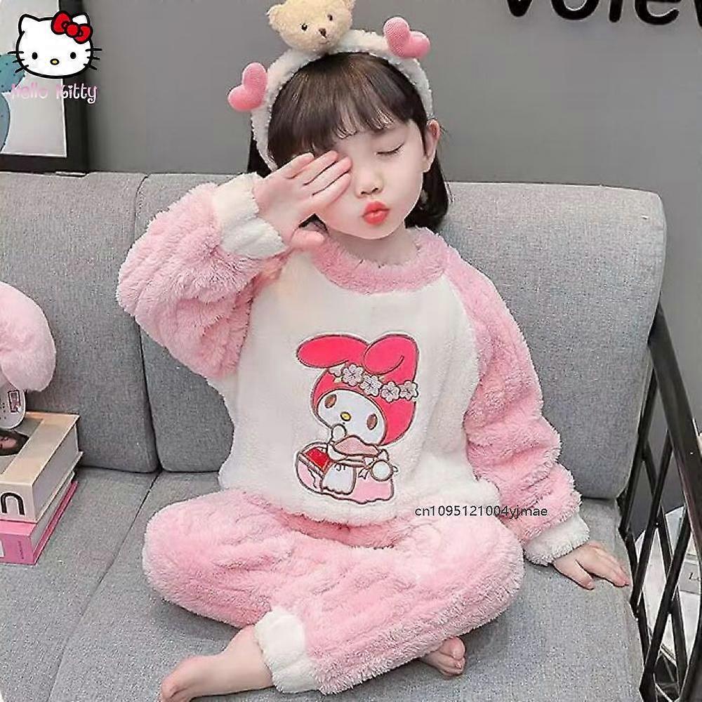 Cartoon Sanrio Children's Thickened Coral Fleece Pajamas Flannel Home Clothes Autumn Winter New Arrival Girls Sleepwear Melody