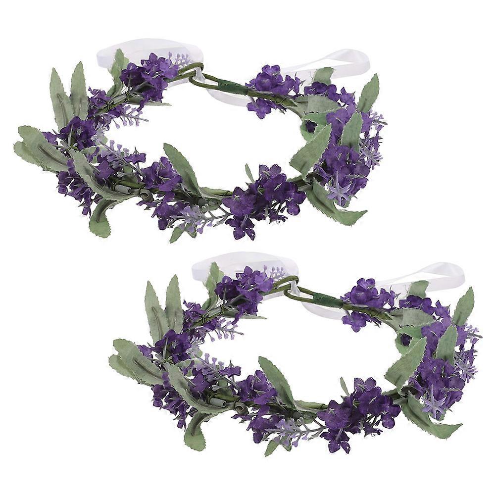 Purple Lavender Floral Wreath Headband for Decoration Use 2Pcs Flowers