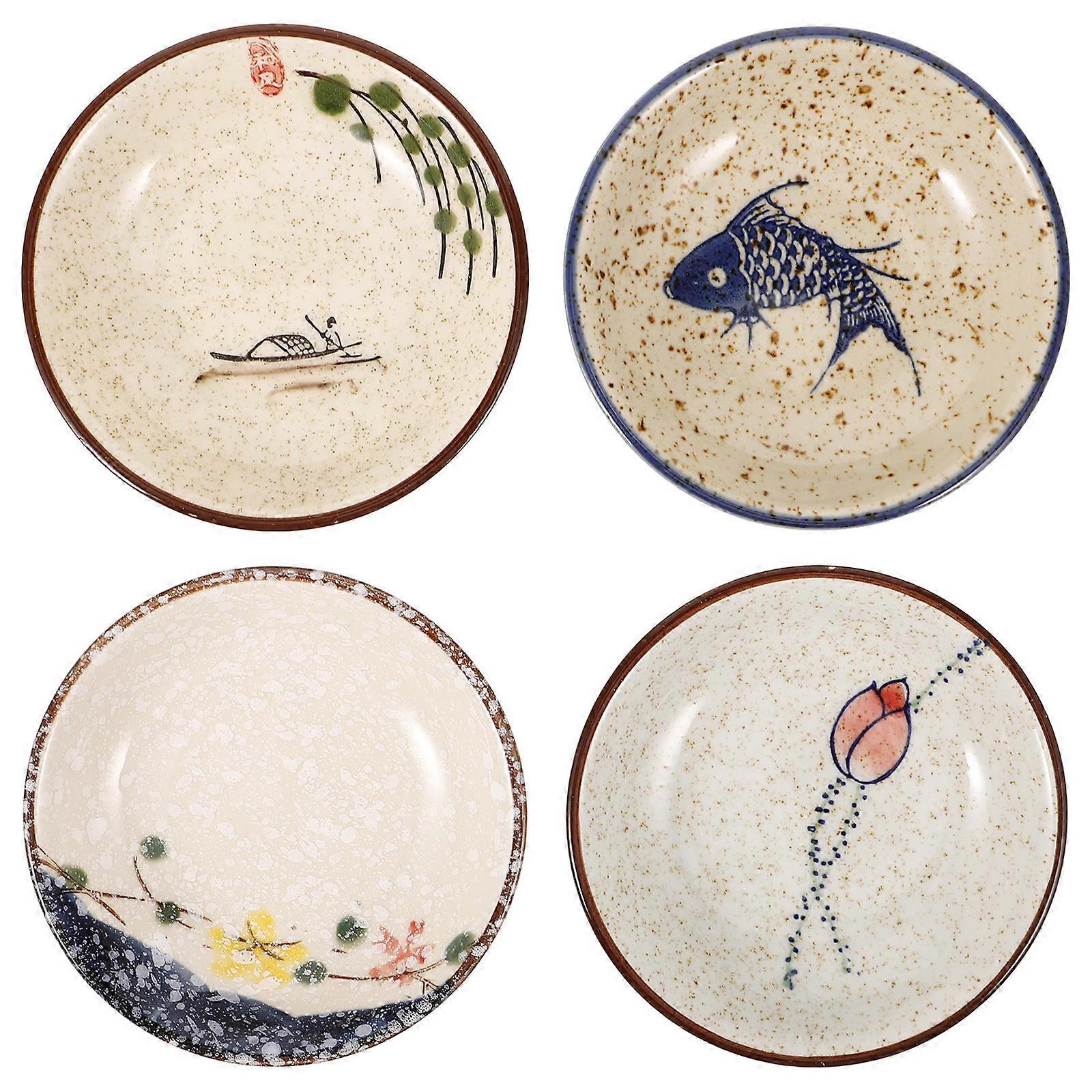Round Ceramic Dipping Bowls Hand-Painted Design For Housewarming Gift Wedding Parties 9.50X9.50X2.50CM 4Pcs