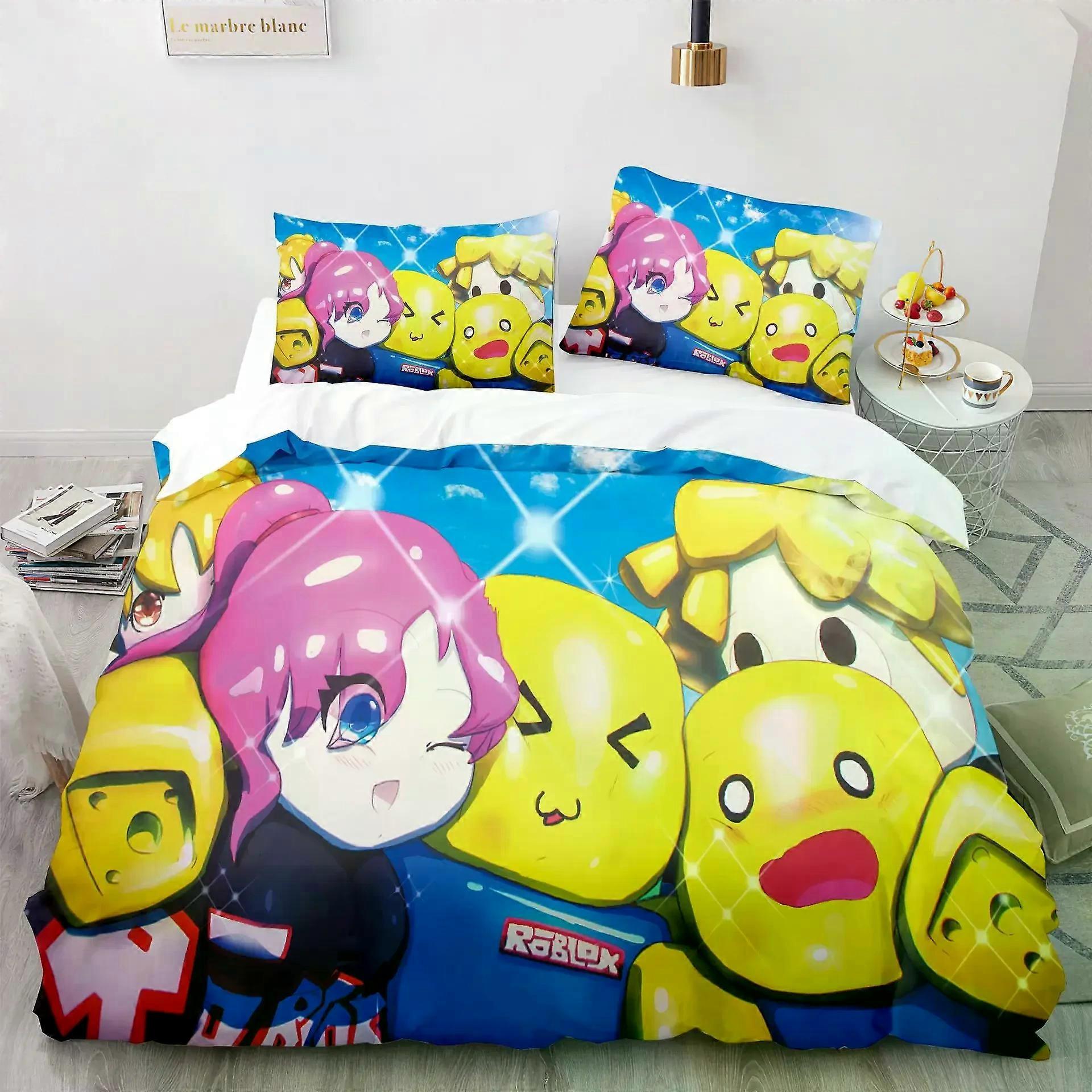 Game Roblox Themed Bedding Set Colorful Print Polyester Student Dormitory Bed Sheet Quilt Cover Kids Gift Home Textiles