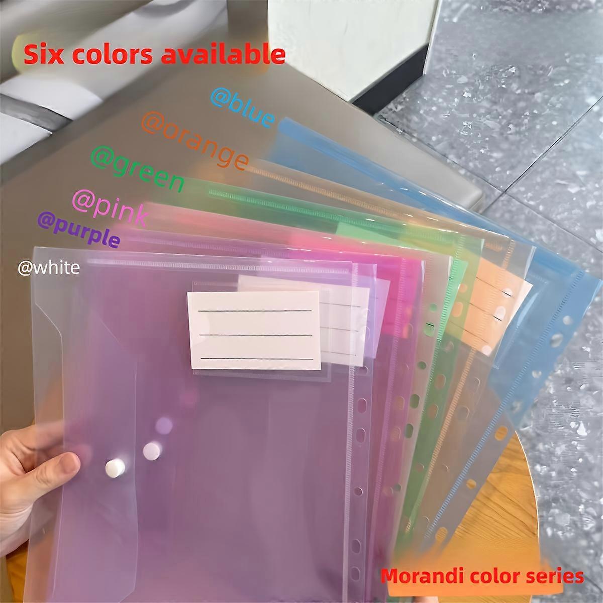 6pcs A4 High-Capacity Loose-Leaf File Bags with 11-Hole Binding Rings,Expandable Button and Label Pocket Folders School